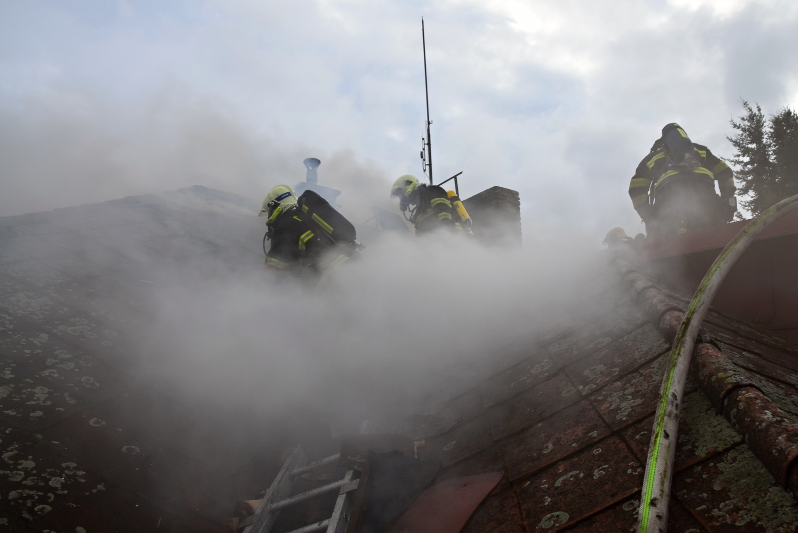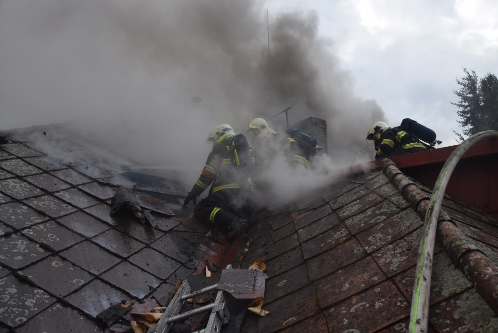 Zásah byl poměrně komplikovaný, protože se požár rozšířil do dřevěného podkroví a půdního prostoru a dále do střešní konstrukce. Navíc byl celý prostor hodně zakouřený, což zvyšovalo nároky na zajištění dostatečného množství náhradních lahví se stlačeným vzduchem pro hasiče zasahující v dýchací technice. Hasební práce probíhaly převážně z vnější části domu, protože uvnitř hrozilo propadnutí konstrukce. V hořícím domě hasiči objevili desetikilogramovou propanbutanovou lahev, kterou vynesli ven a ochlazovali proudem vody.