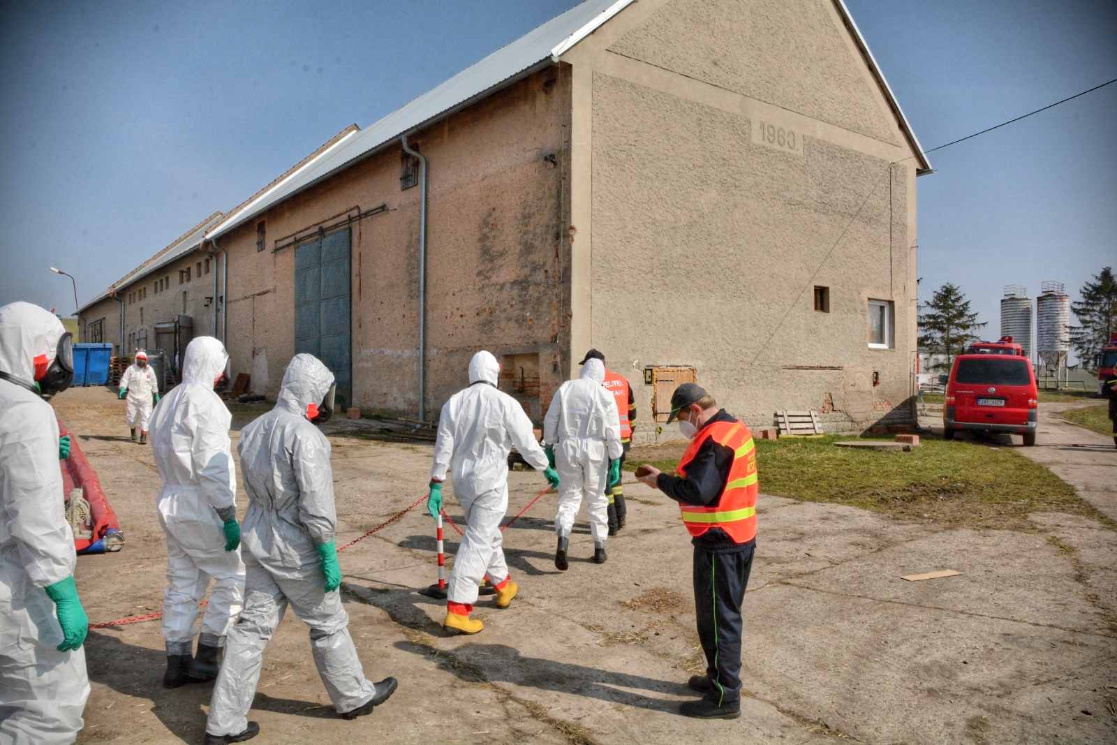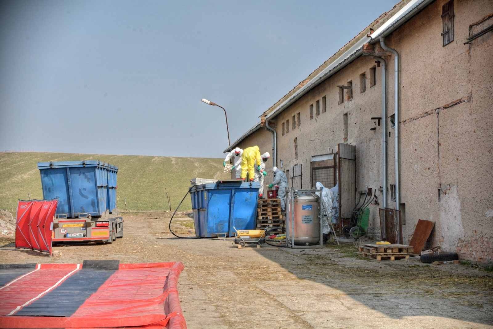 Dvě skupiny hasičů spolu se zaměstnanci firmy postupně vkládali kachny do velkoobjemového kontejneru naplněného oxidem uhličitým. Celému procesu dohlíželi zaměstnanci veterinární správy. Zahubení 2930 kachen s likvidací 3780 vajíček bylo dokončeno před polednem. Příslušníci záchranného útvaru pomocí termo aerosolového generátoru, tak zvaného fumigátoru, pak dezinfikovali vnitřní prostor chovné haly. Na speciálních stanovištích byla provedena dekontaminace zasahujících a techniky. Před 13. hodinou odjel nákladní automobil s kadáverem do asanačního podniku. V té době byla dokončena dekontaminace i dezinfekce haly a následoval úklid použitých technických prostředků.