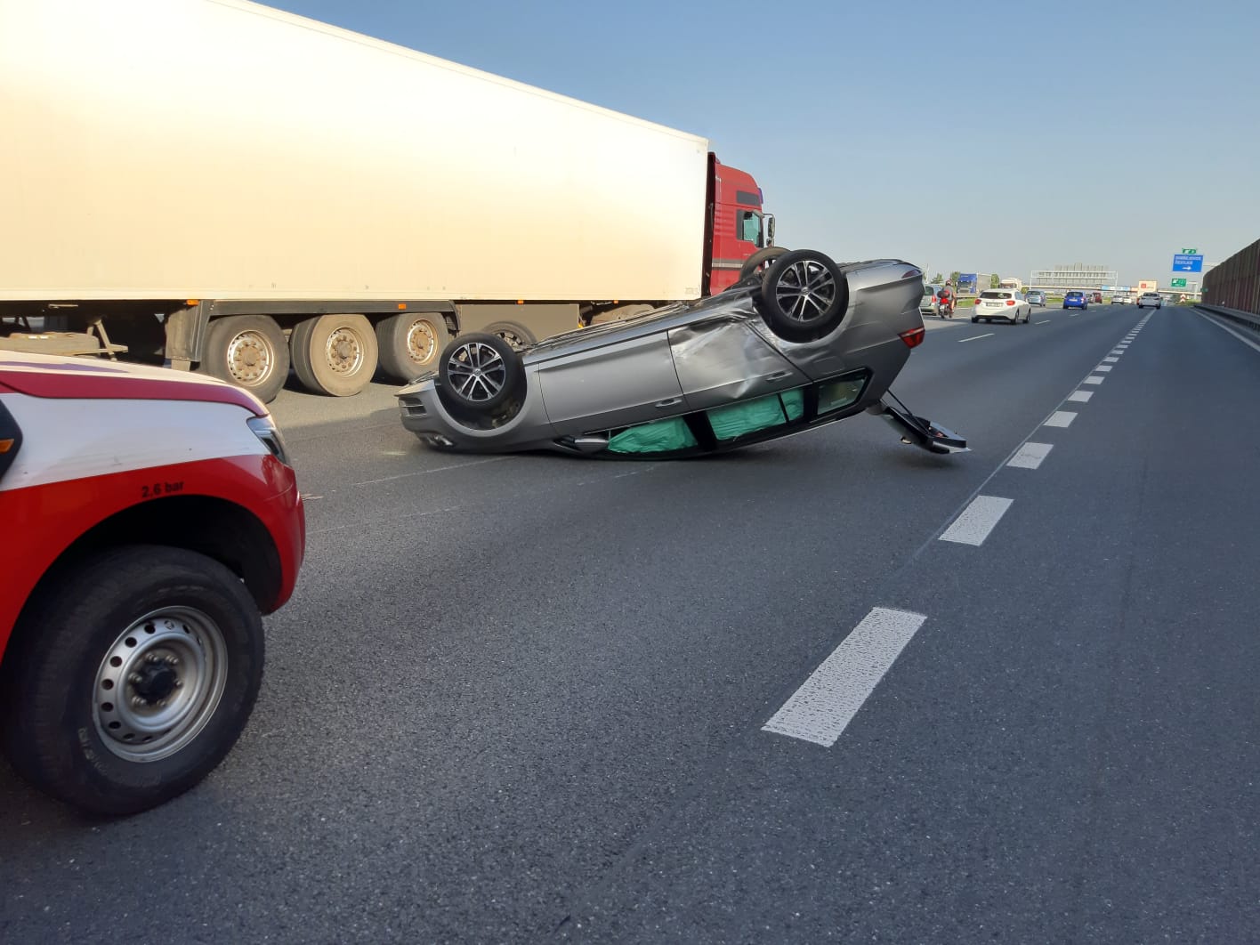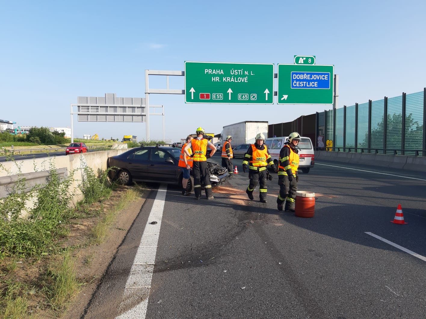 Ve středu 12. června před sedmou hodinou ranní byla středočeským hasičům nahlášena dopravní nehoda na brněnské dálnici D1 na kilometru 8,5 ve směru do Prahy u obce Nupaky.