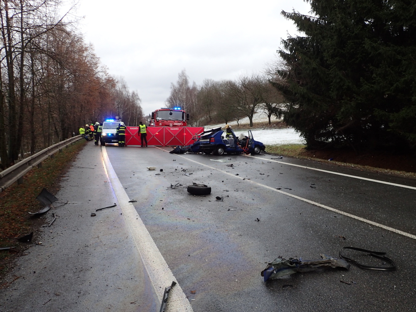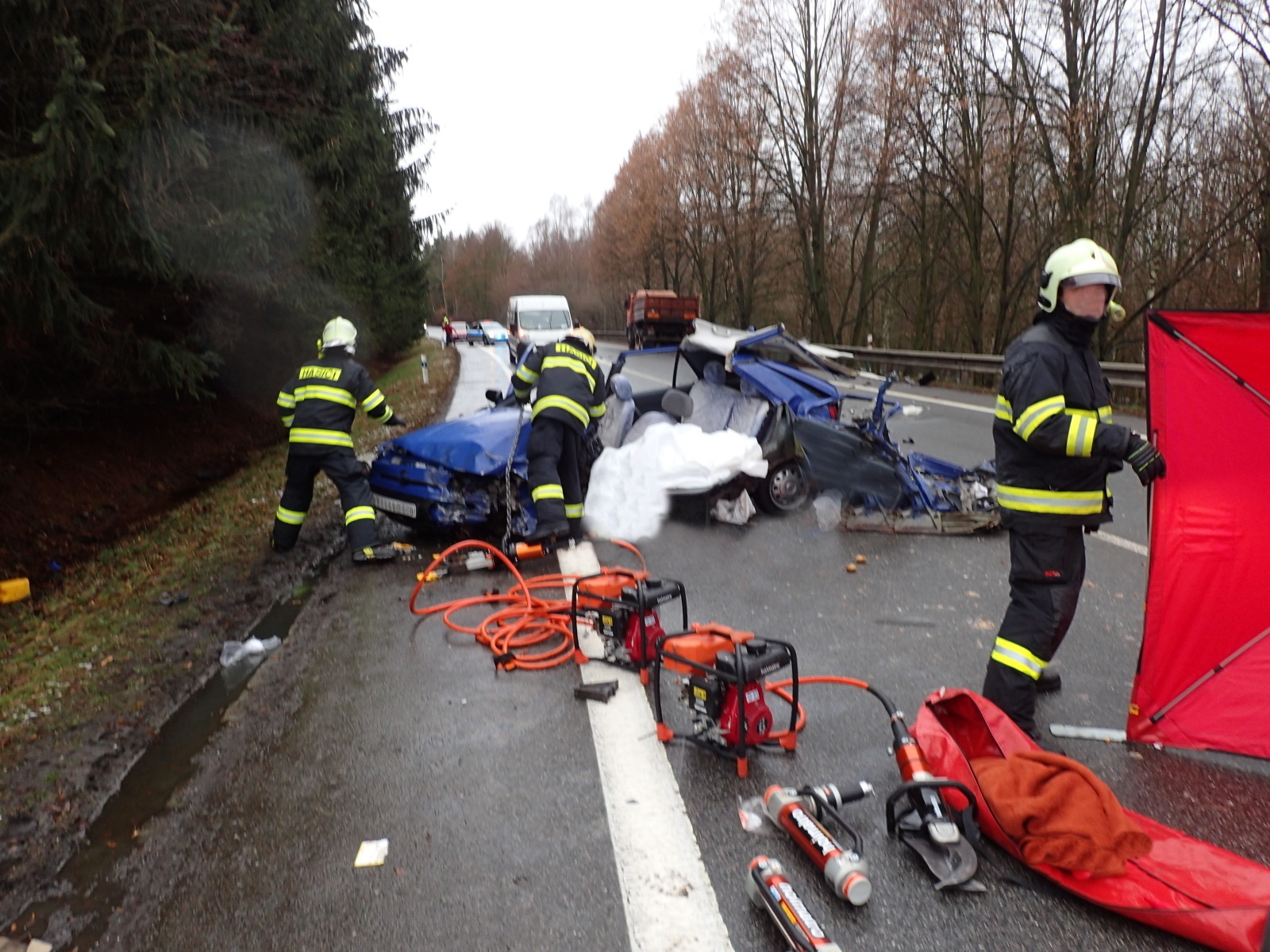 Po vyšetření nehody Policií ČR vyprostili hasiči tělo a předali ho pohřební službě. Při úklidu vozovky poté spolupracovali se správou a údržbou silnic.
