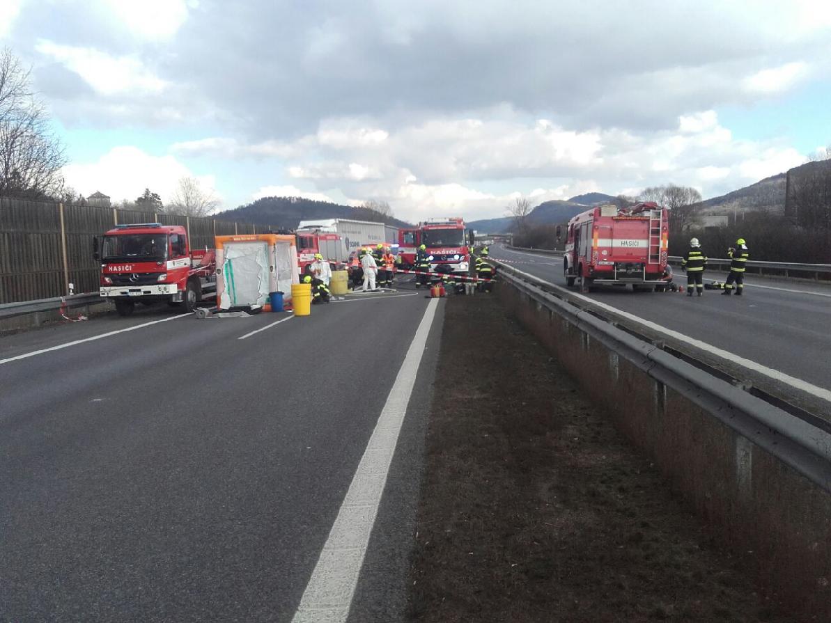 Na dálnici D5 ve směru z Prahy do Plzně před exitem 28 u Bavoryně havaroval v úterý 13. února 2018 krátce před polednem nákladní automobil převážející nebezpečnou látku (polymerové kuličky).