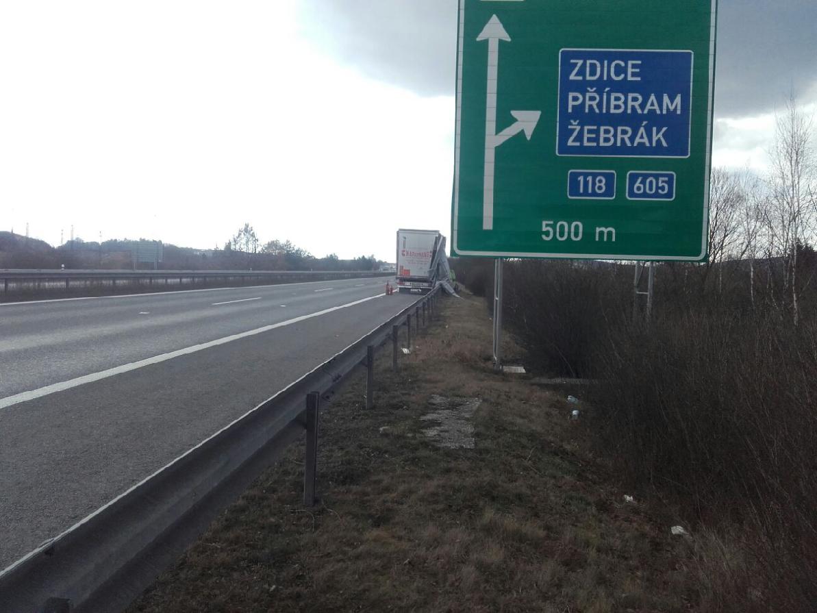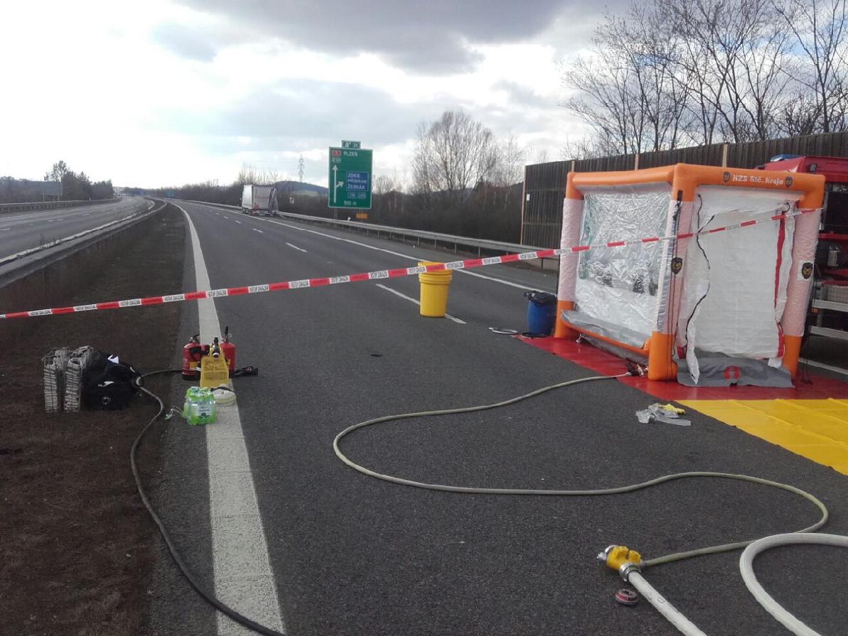 Havárie kamionu u Bavoryně uzavřela dálnici D5 v obou směrech