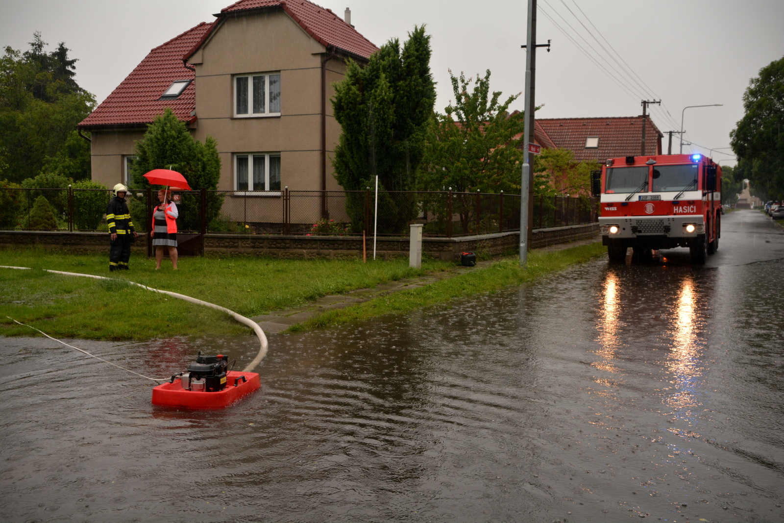 Ke skokovému nárůstu řešených událostí došlo po 10. hodině dopoledne. Od 11. do 12. hodiny řešilo operační středisko s hasiči tolik událostí, jako běžně za celý den. Nejhorší situace byla na Kolínsku. Od 12. do 13. hodiny zde napršelo 42 litrů vody na jeden metr čtvereční. Hasiči v okrese Kolín vyjížděli k 59 událostem, kdy nejčastěji čerpali vodu ze zatopených sklepů a ulic, v několika případech také odstraňovali popadané stromy.