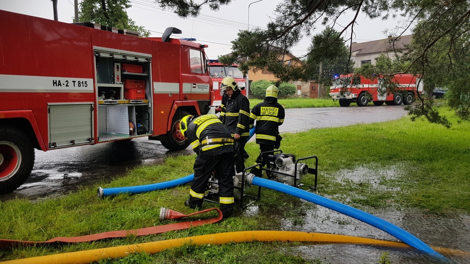 Vodu ze sklepů rodinných domů čerpali také hasiči na Nymbursku, například v obcích Kolaje, Vrbice a Sokoleč. Stromy řezali v obcích Sedlec a Bílé Podolí na Kutnohorsku.