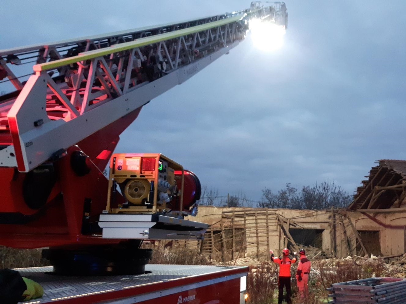 Přivolaný statik na místě rozhodl o odstranění zbylé části střechy a obou štítů, které hrozily sesunutím do silnice procházející těsně kolem stavby. Na pomoc musela vyjet těžká technika z jihlavské základny Záchranného útvaru HZS ČR. Vzhledem k brzkému setmění vyrazil z kolínské stanice také automobilový žebřík, na který byl umístěn osvětlovací balon pro lepší zajištění bezpečnosti při demoličních pracích.