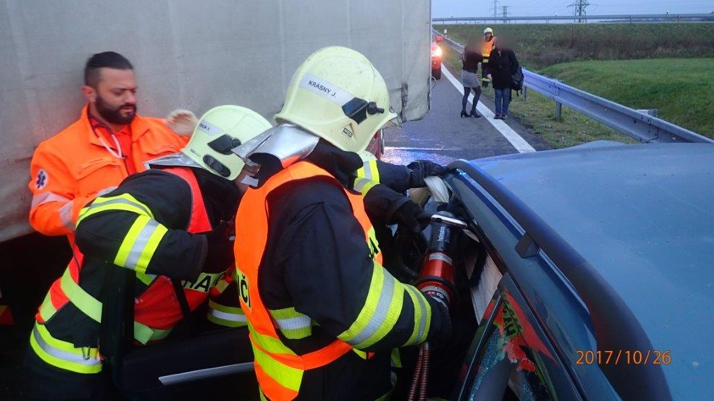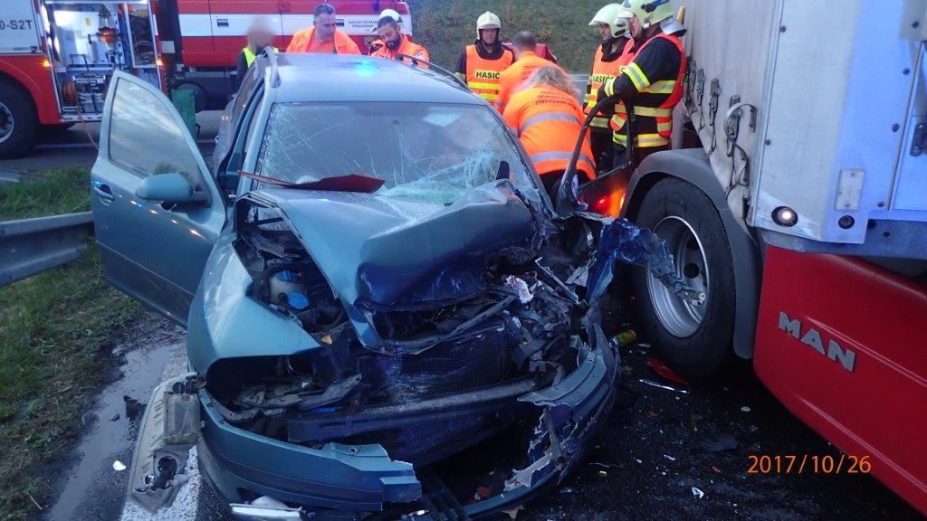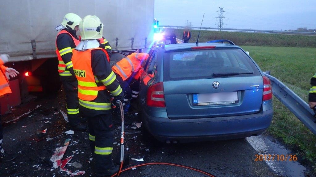 Krátce před půl osmou byla ve čtvrtek 26. října2017 oznámena na Krajské informační a operační středisko Hasičského záchranného sboru Středočeského kraje dopravní nehoda osobního vozidla a kamionu na silnici číslo 12 před Kolínem ve směru od Prahy.