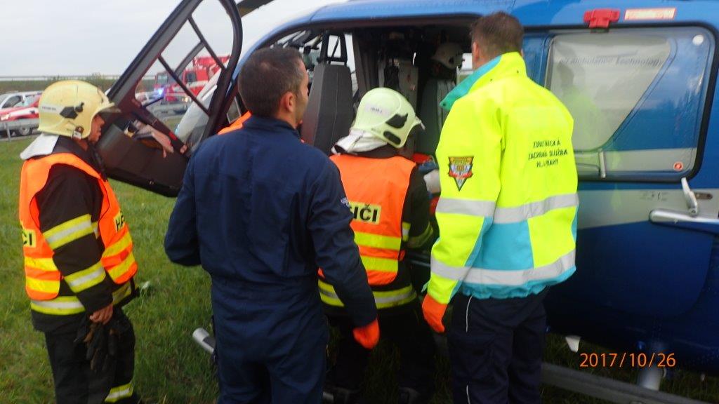 Už první informace hovořila o nutnosti vyproštění řidiče z osobního vozidla. K události byla vyslána profesionální jednotka hasičů z Kolína a zároveň byl dán požadavek na leteckou záchrannou službu.