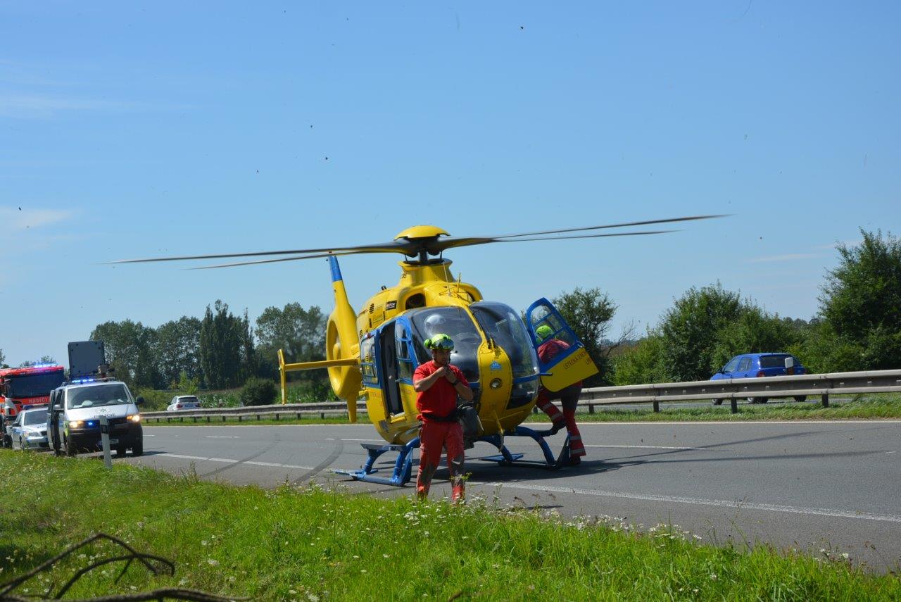 K havárii osobního auta u Mnichova Hradiště letěl vrtulník