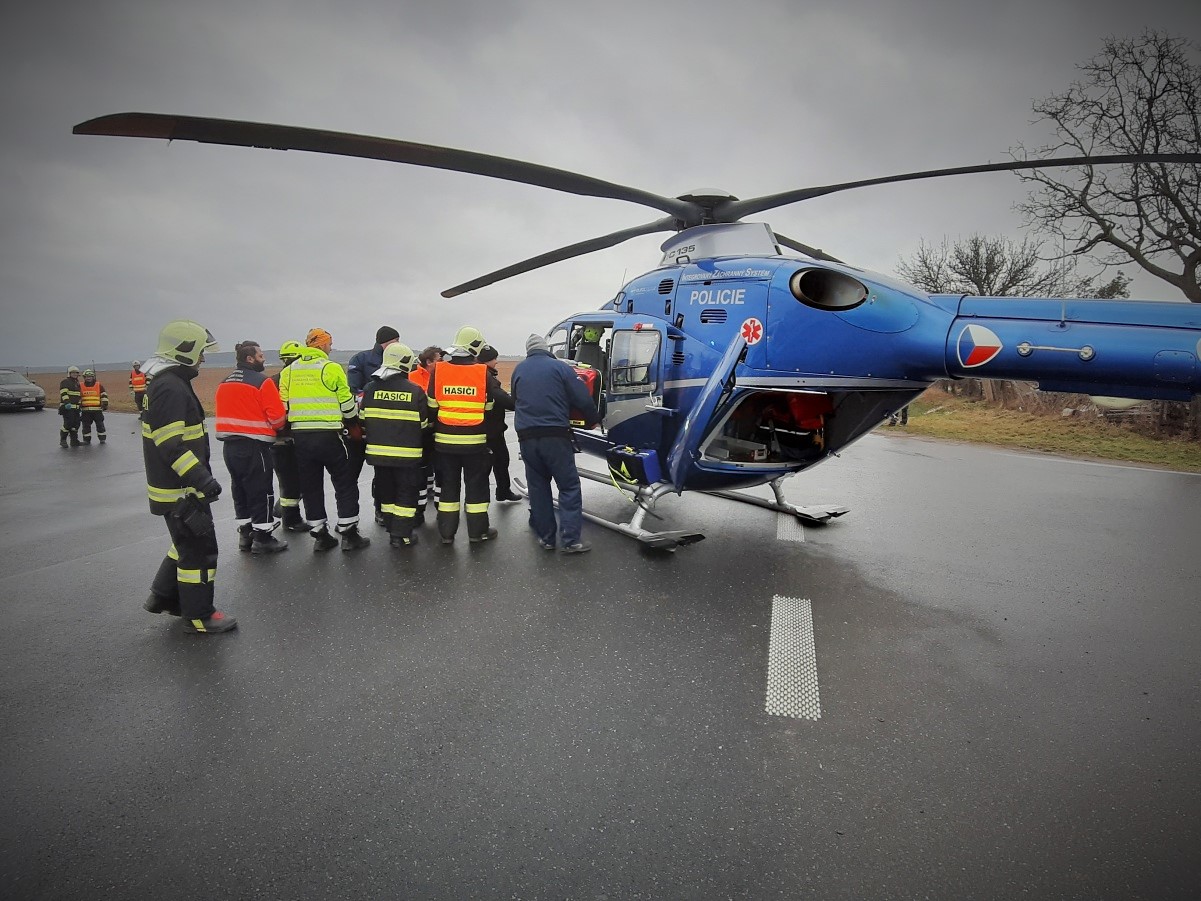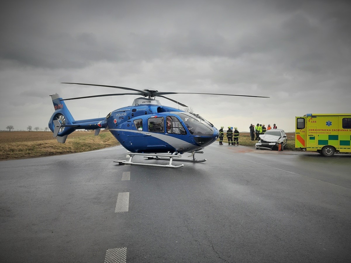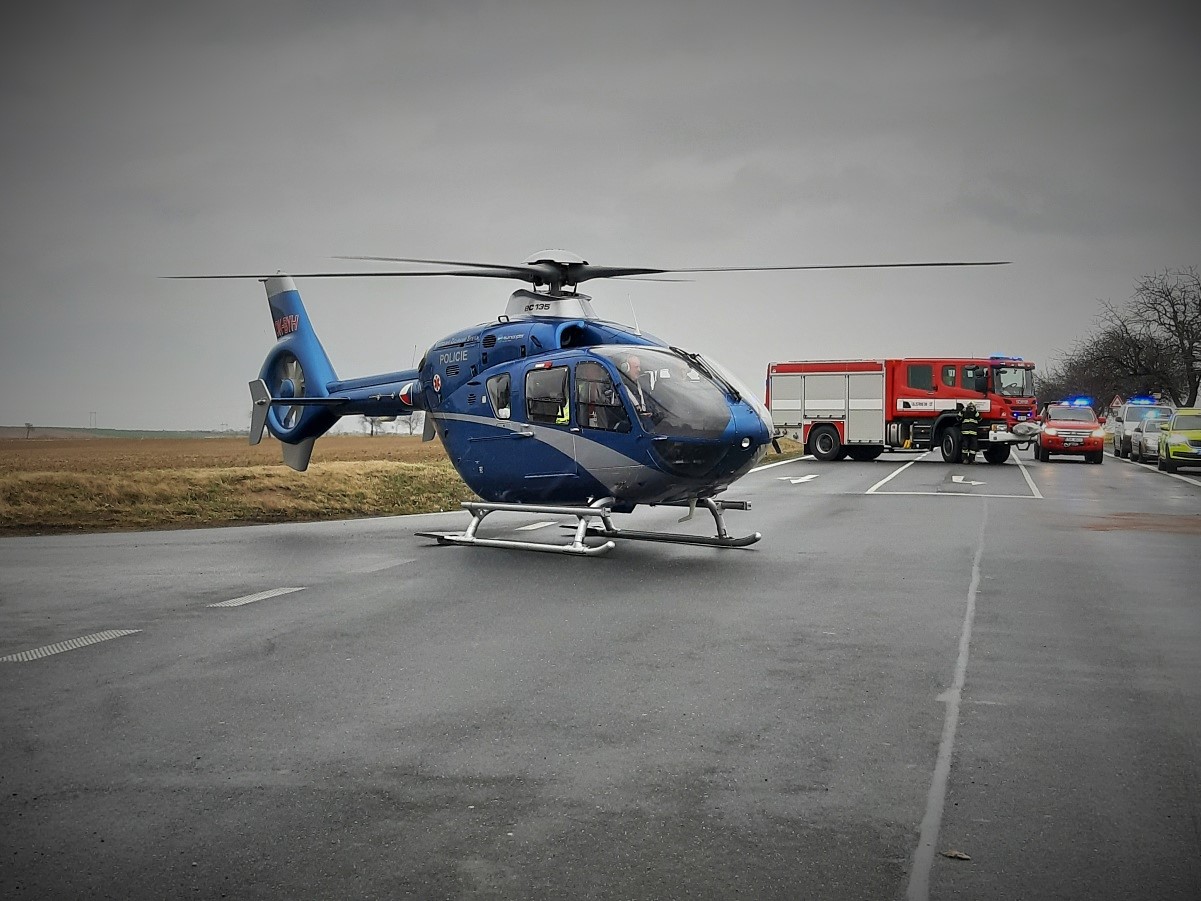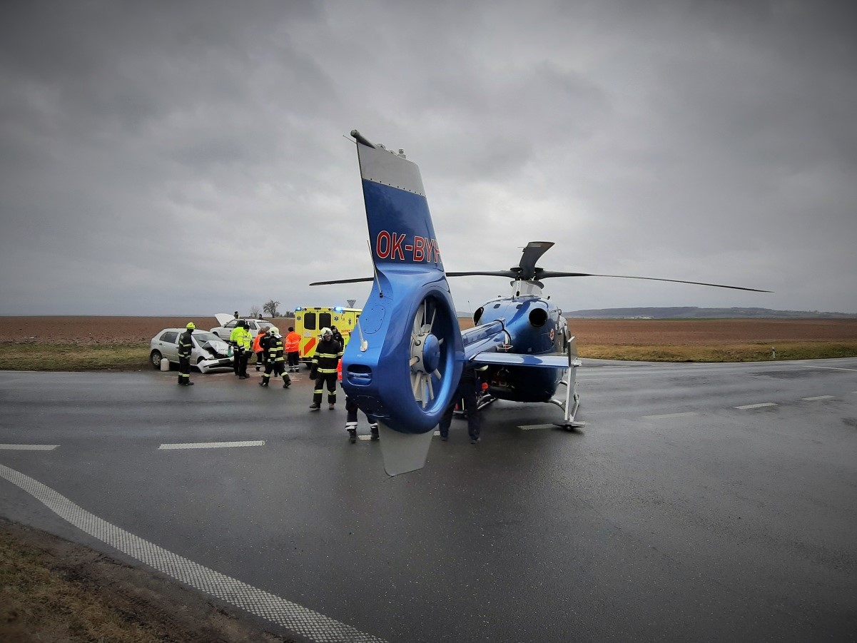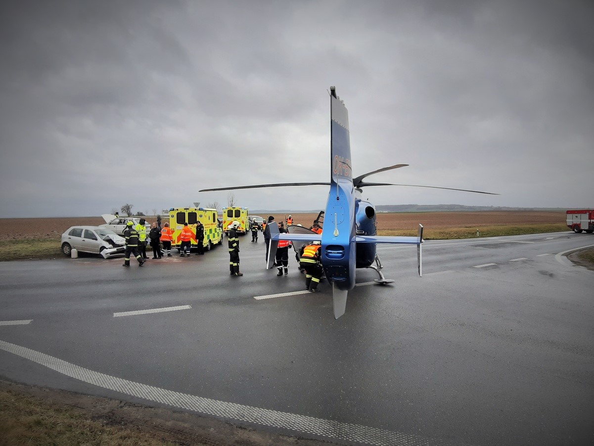 Přistání vrtulníku k nehodě u Vrbčan