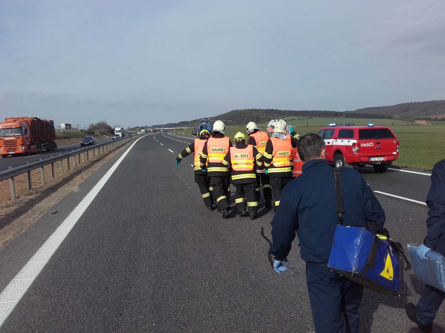 V úterý 25. dubna pár minut po osmé hodině přijal operátor tísňové linky HZS Středočeského kraje informaci o dopravní nehodě na dálnici D5 před 30. kilometrem ve směru z Prahy do Rozvadova.