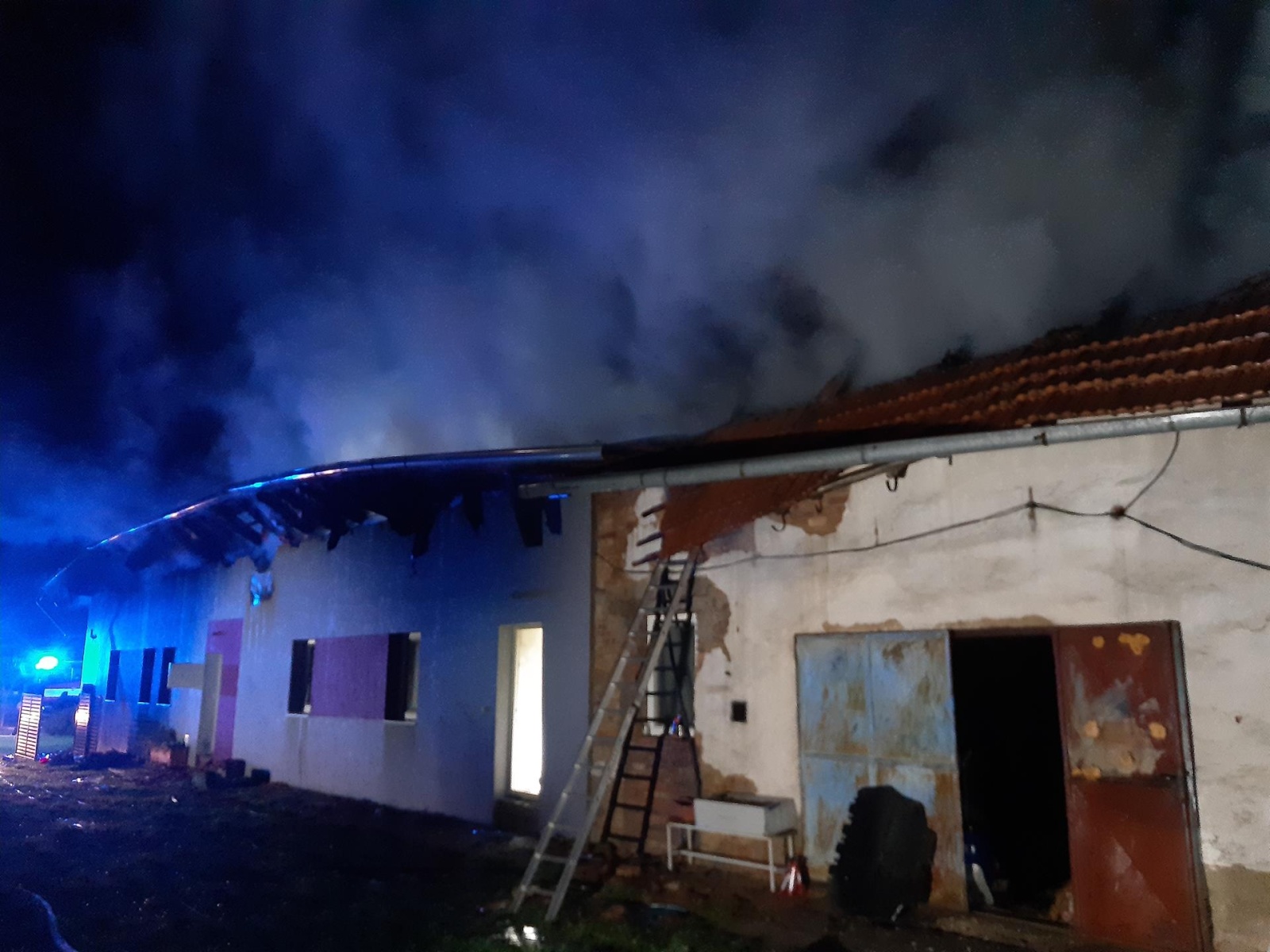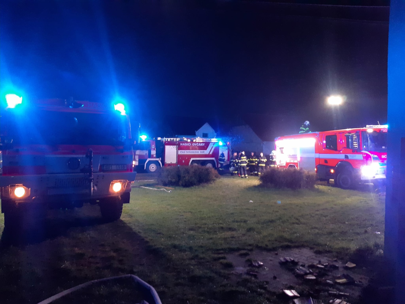 Prvotní zásah v dýchací technice na plamenné hoření byl veden třemi C a dvěma vysokotlakými proudy. Požár už byl hodně rozvinutý a postupně se začala bortit střecha, která se nakonec v celé délce propadla dovnitř budovy. Hasiči proto museli postupovat velice opatrně. Na kraji jedné místnosti nalezli dvě propanbutanové lahve, které odnesli na volné prostranství a ochlazovali vodou. Kolem půl jedné byla některá technika odvolána a přejížděla k požáru staré drážní budovy na železniční stanici v obci Velký Osek. Požár se jednotkám podařilo dostat pod kontrolu v 1.18 hodin, kdy byla operačnímu středisku ohlášena lokalizace.
