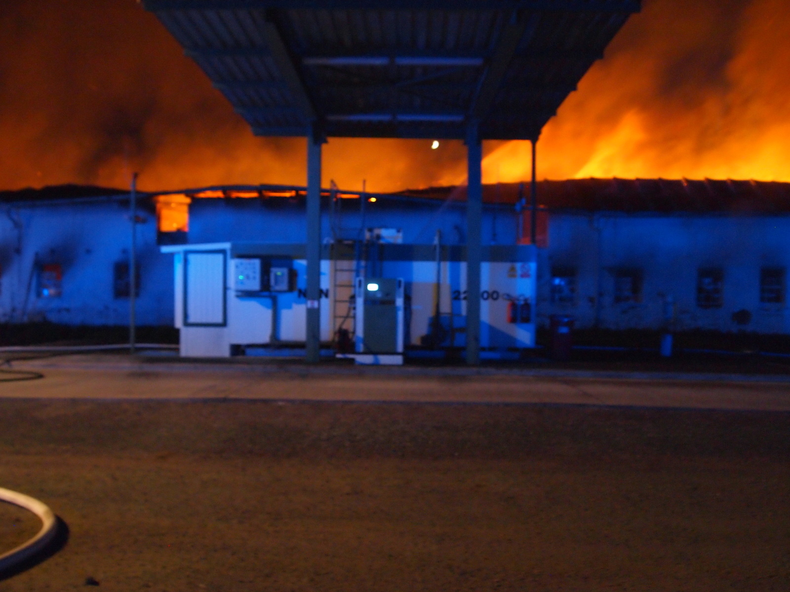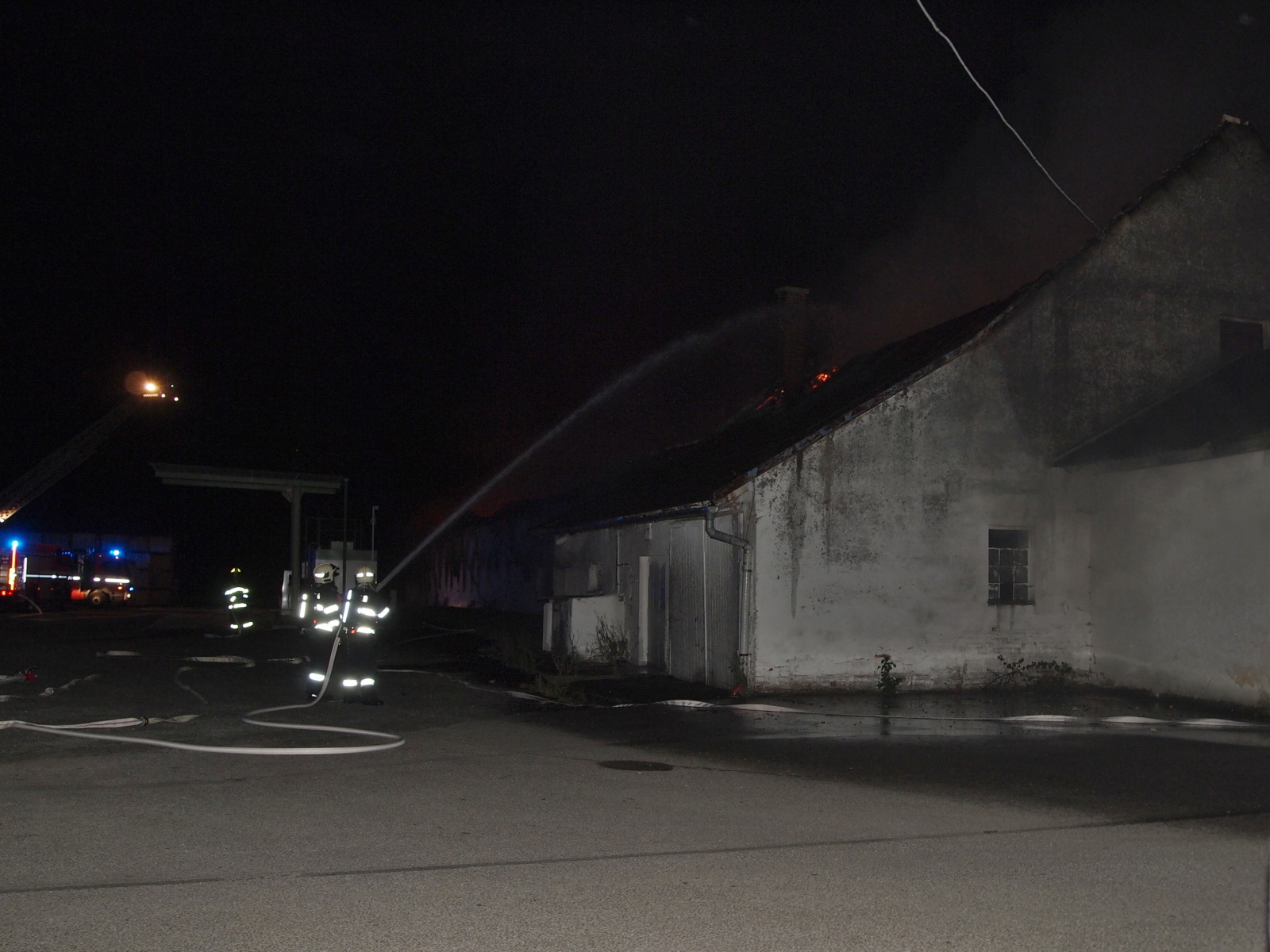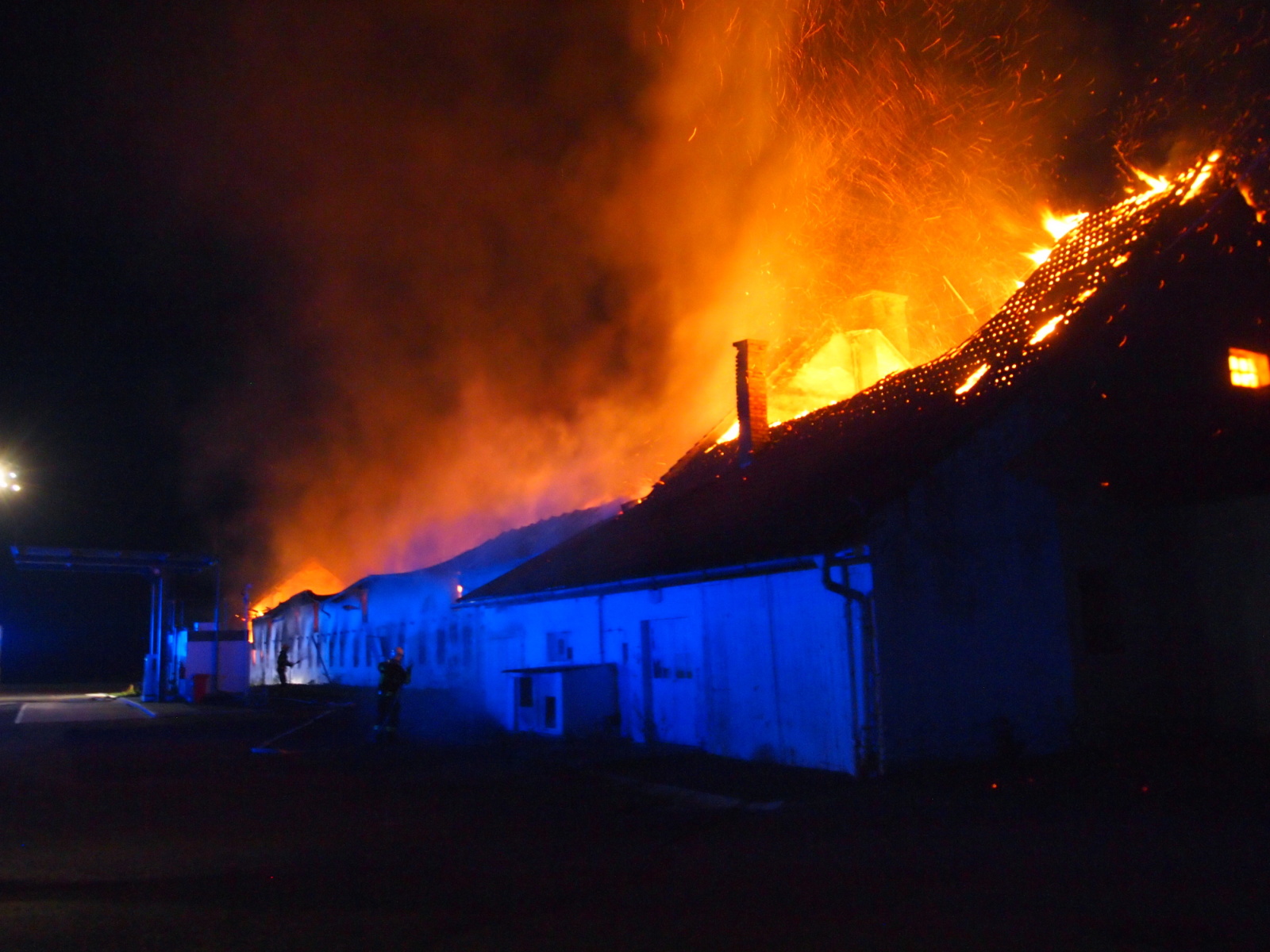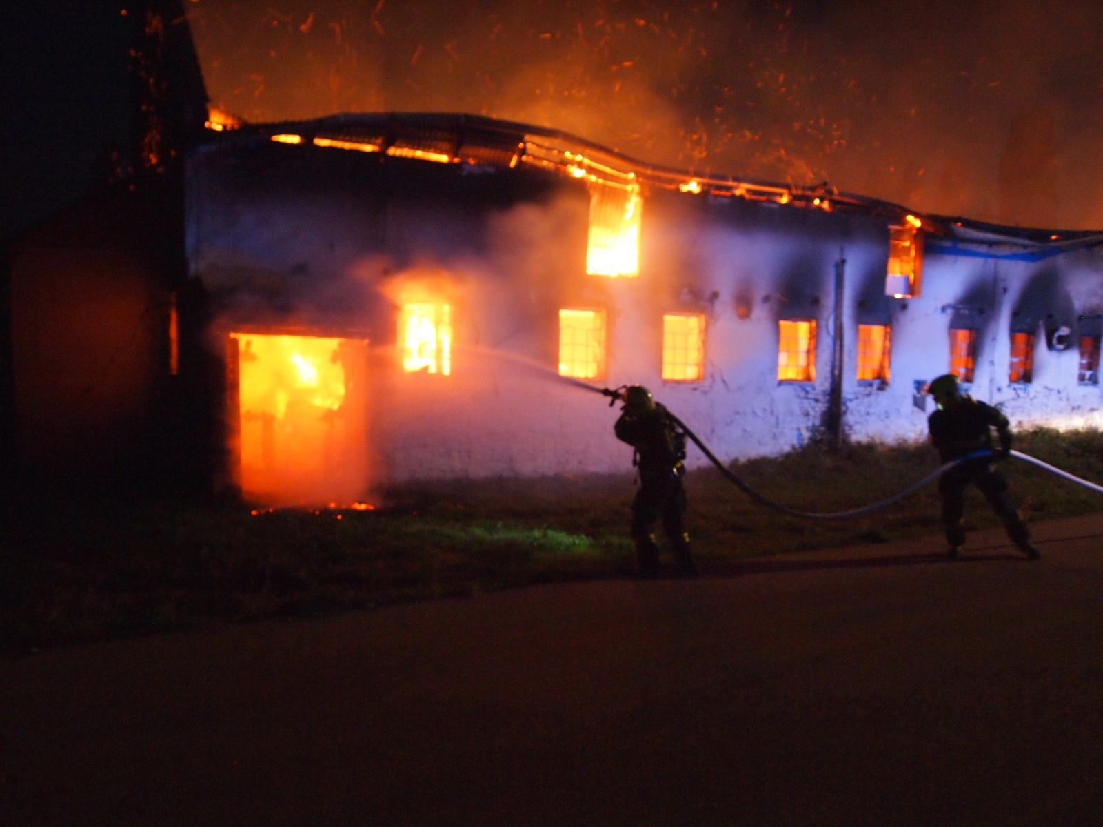 středisku ohlášena krátce po 21. hodině. V té době už měly jednotky ukončenou evakuaci materiálu a strojů z těsné blízkosti objektu a začalo náročné hašení jednotlivých ohnisek, která se nacházela pod propadlou střechou.