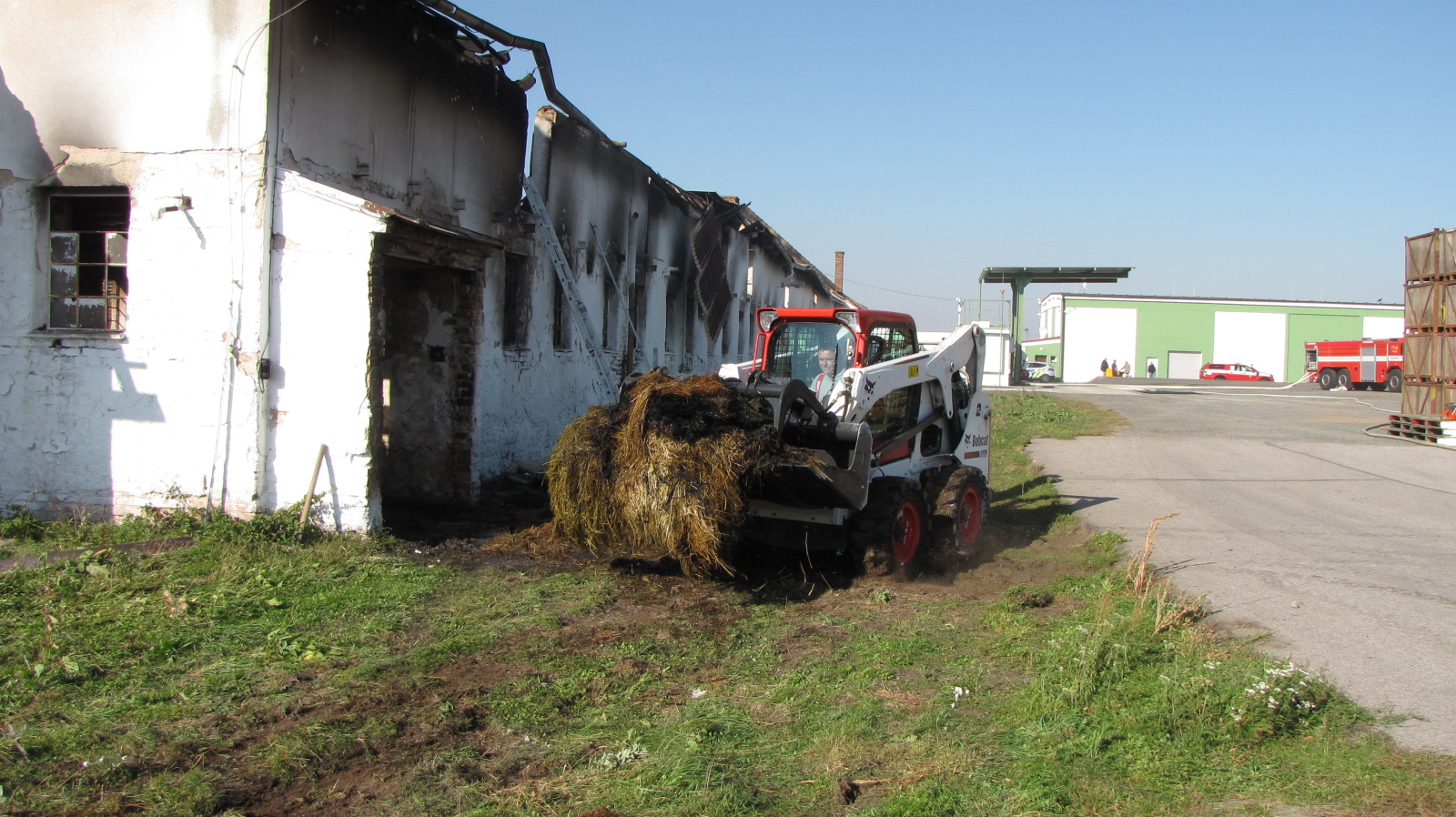 Intenzitu požáru umocňovalo obrovské množství uskladněného sena a slámy, takže lokalizace byla operačnímu
