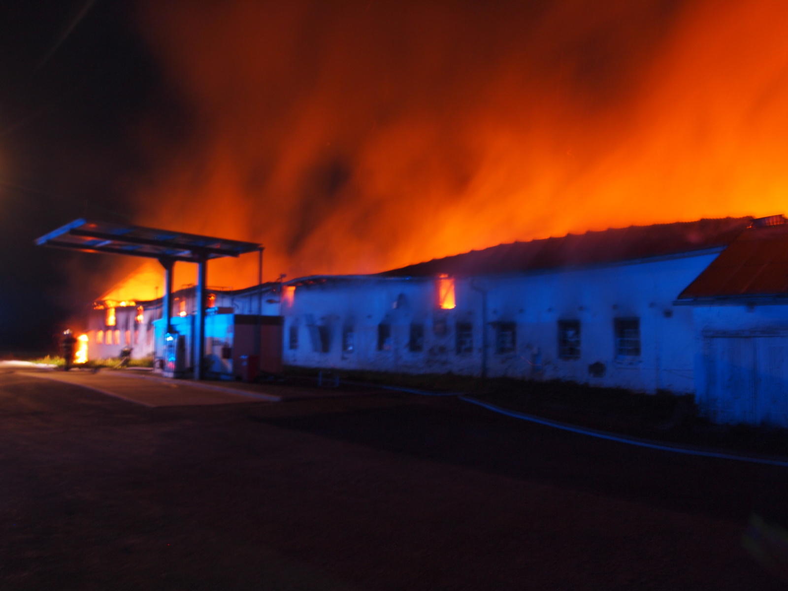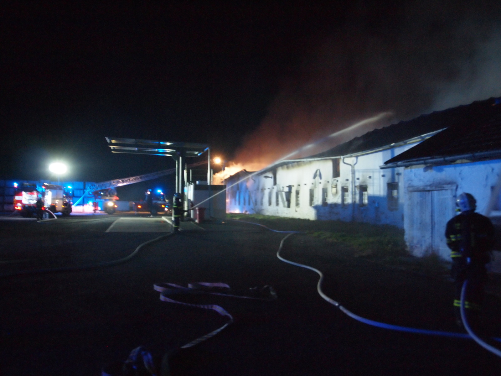 Na hořící objekt, ve kterém se nenacházela žádná zvířata, hasiči v dýchací technice postupně nasadili sedm C proudů. Kromě toho se soustředili také na uchránění v těsném sousedství stojící čerpací stanice, kterou