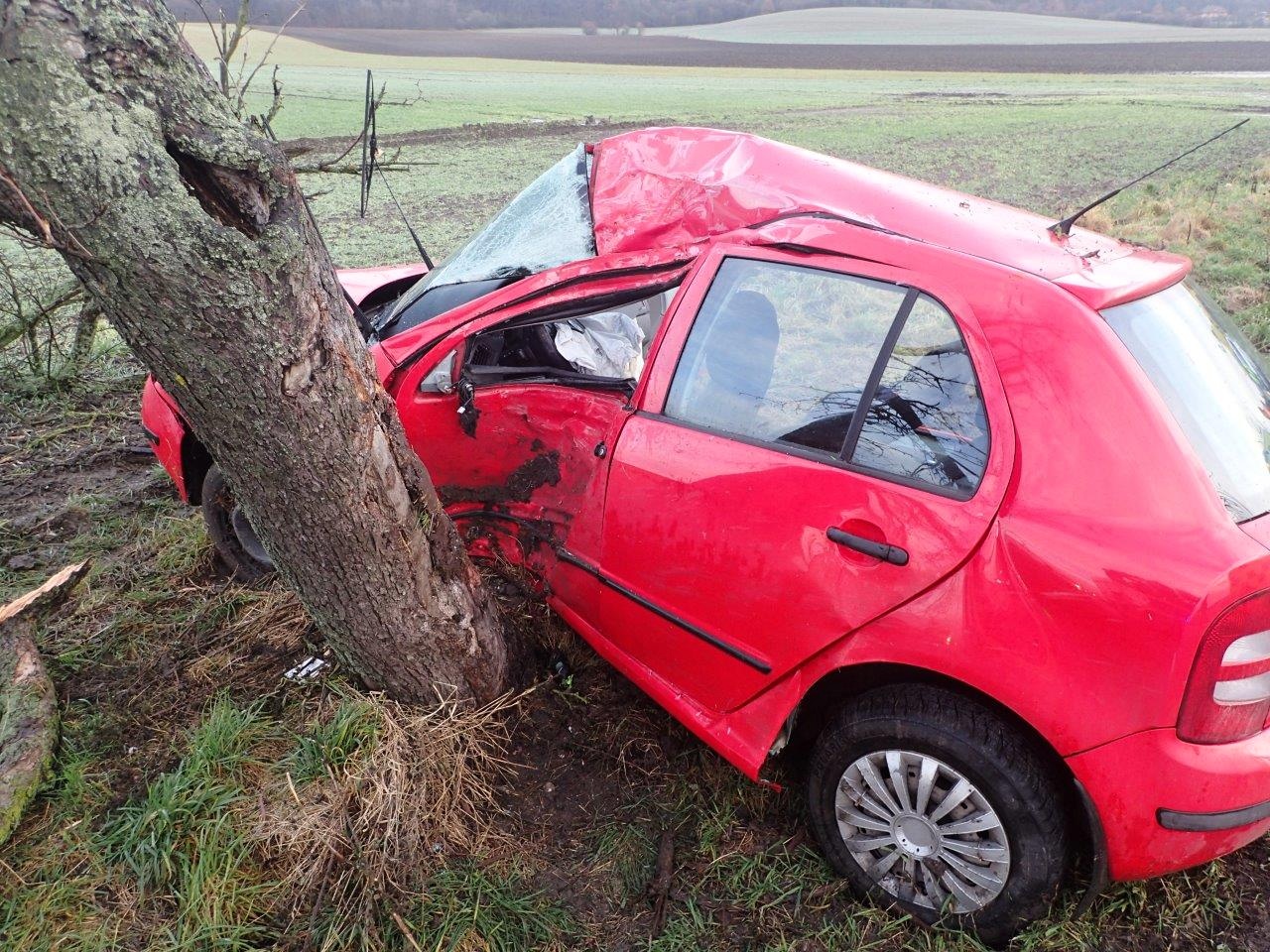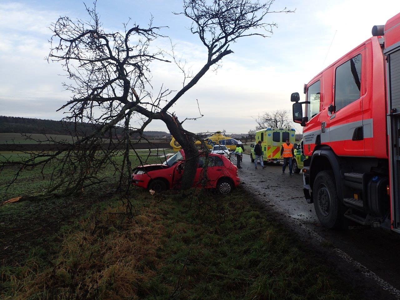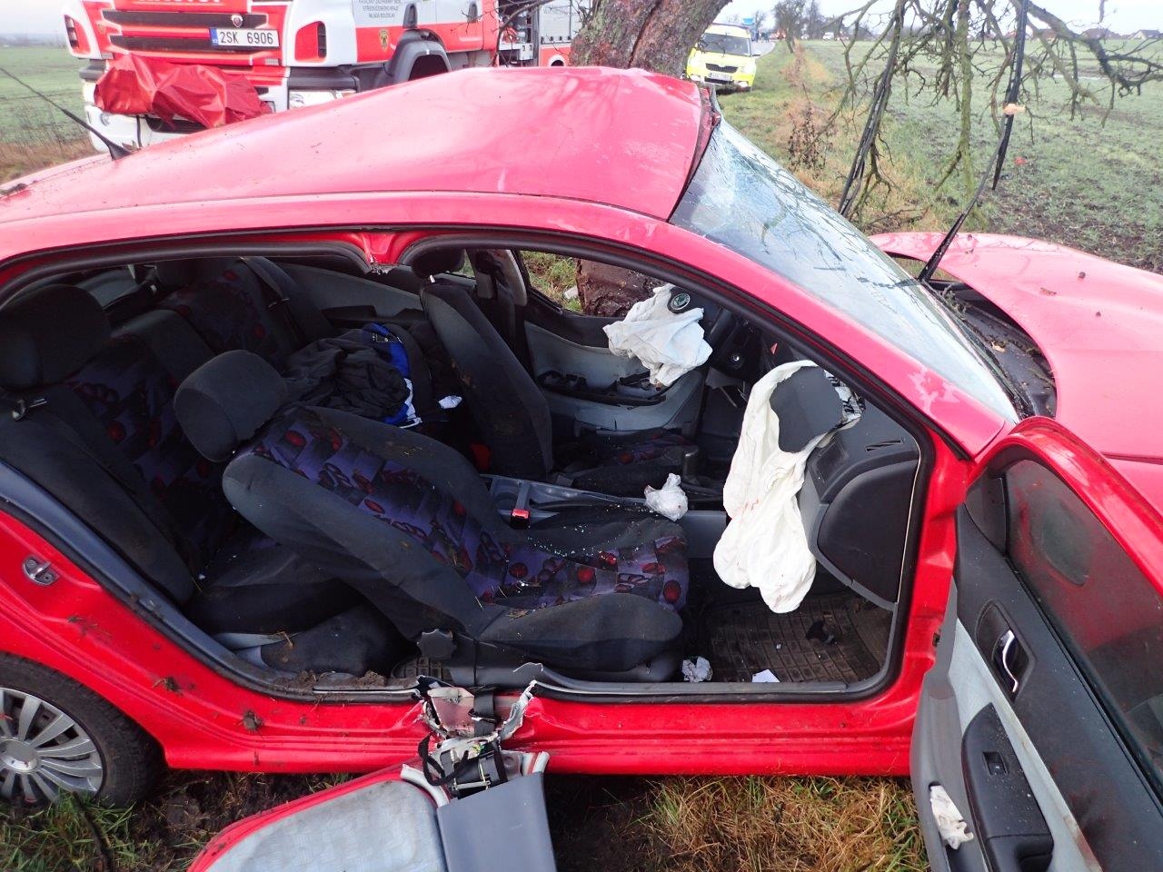 Vozidlo po smyku narazilo boční stranou do stromu u silnice. Uvnitř zůstala zaklíněna posádka, kterou tvořili dva muži. K události byla vyslána jednotka profesionálních hasičů ze stanice Mladá Boleslav s jedním cisternovým automobilem.