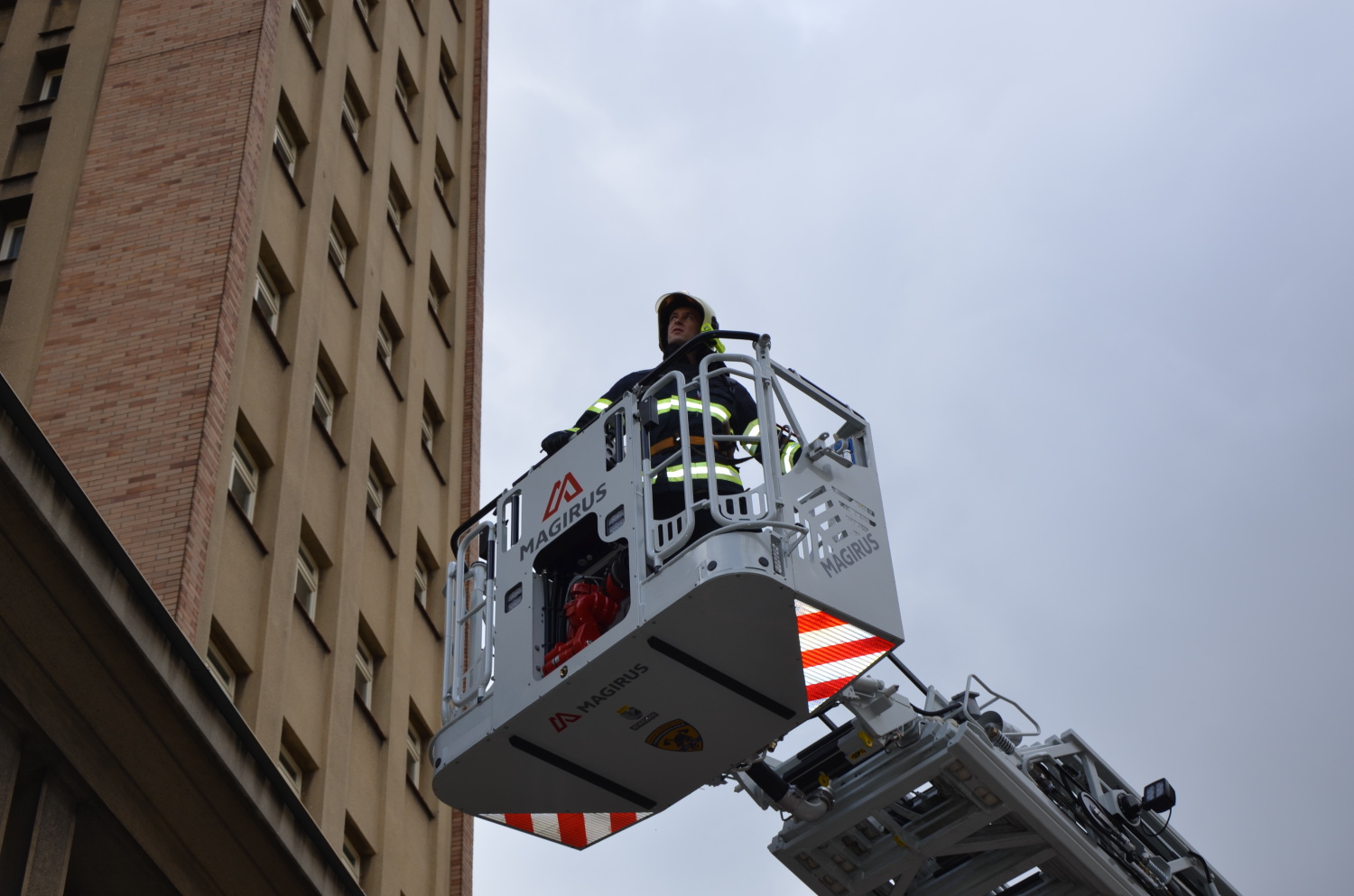 „Pro nás je vždycky nejdůležitější volný přístup. Když jsou kolem domu nejen stromy, ale i spousta zaparkovaných aut, pak nemůžeme techniku ustavit tak, abychom na sto procent využili to, co všechno dokáže. V praxi by to třeba znamenalo, že z horního okna do koše nevezmeme čtyři lidi, ale třeba jen jednoho člověka – nebo ho dokonce ani nenaložíme, ale za naší asistence svedeme dolů klasicky po žebříku. Obrovskou výhodou je, že dovolené zatížení nám neustále hlídá elektronika, aby záchrana byla skutečně bezpečná. Dnes jsme si ověřili, že s tímto novým pomocníkem se dostaneme až k poslednímu patru rozdělovských věžáků, což s minulým typem žebříku nebylo ani myslitelné,“ shrnul čtvrteční test, který se zájmem sledovaly desítky velkých i malých pozorovatelů, velitel kladenské stanice mjr. Bc. Milan Strádal.