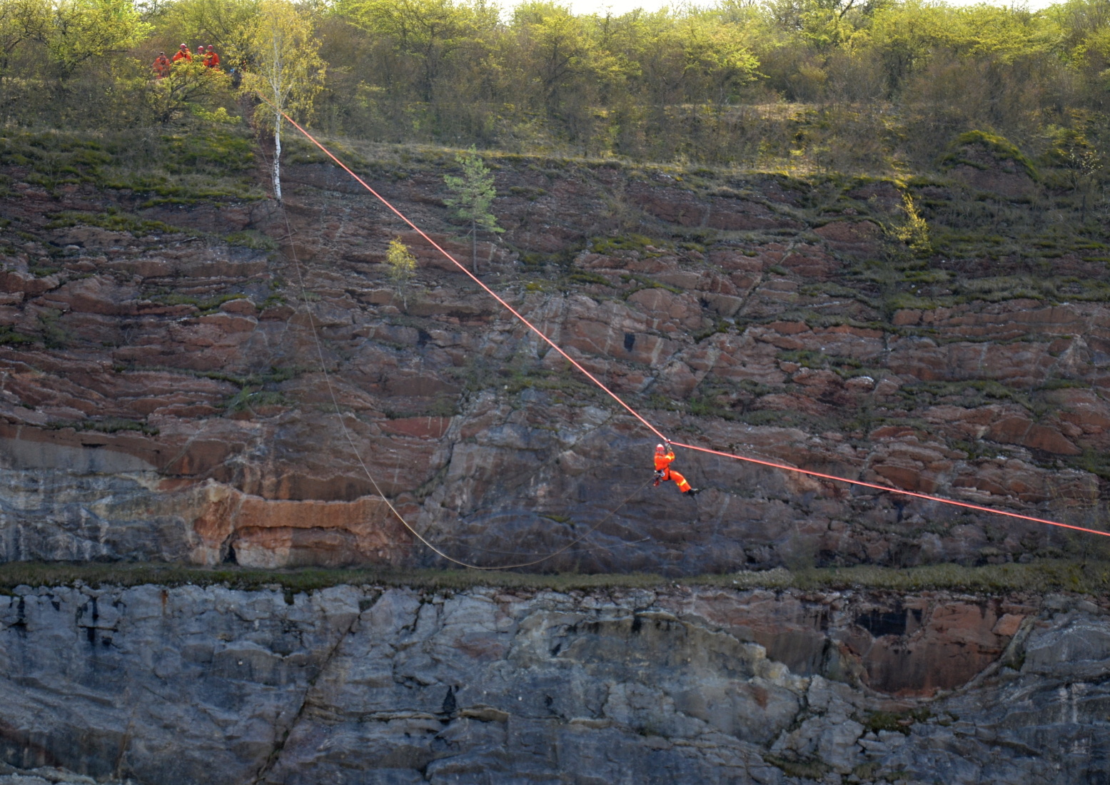 Tentokrát bylo námětem výcviku vytvořit na šířku lomu lanový traverz o délce sto metrů.  Družstvo bylo rozděleno do tří skupin, kdy každá z nich procvičovala pod vedením svého lezeckého instruktora na daném stanovišti určitou činnost.