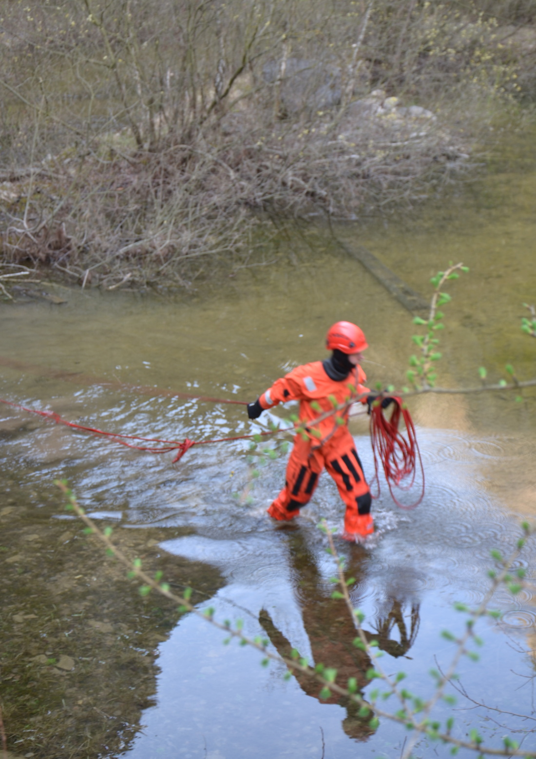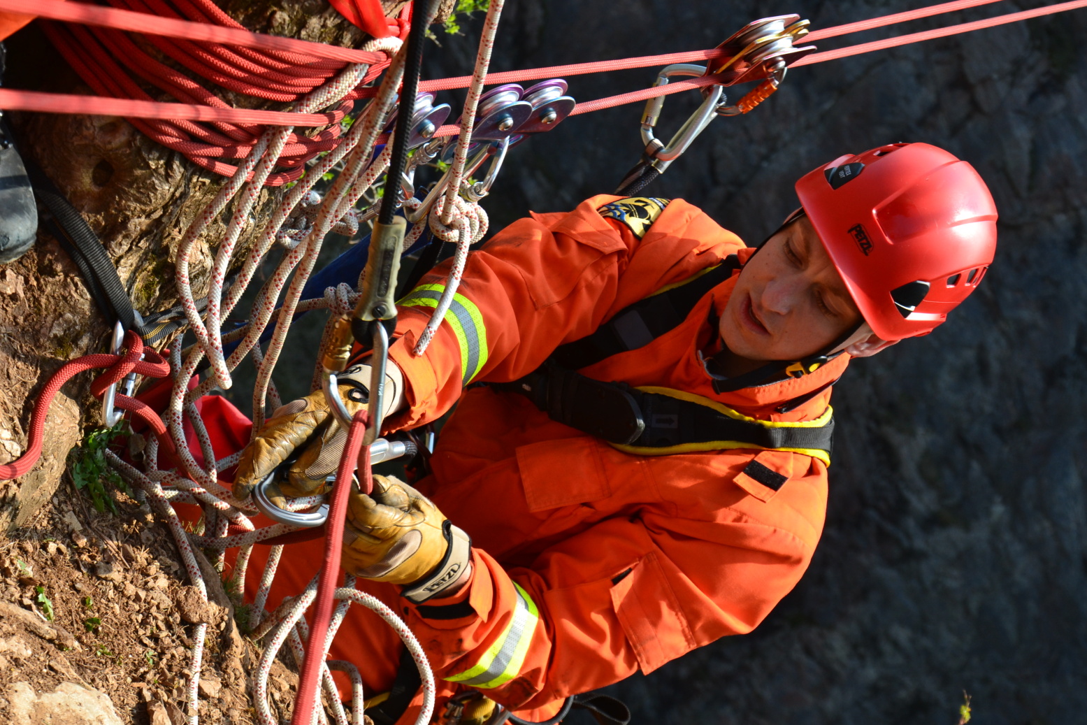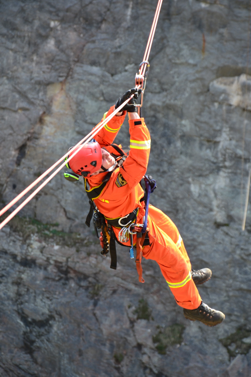 Členové lezeckého družstva si tak mohli vyzkoušet vzájemnou spolupráci při tvoření tohoto poměrně náročného lanového traverzu ve složitém terénu, včetně radiové komunikace.