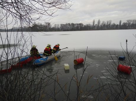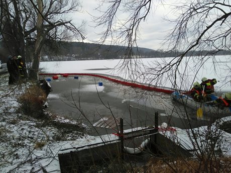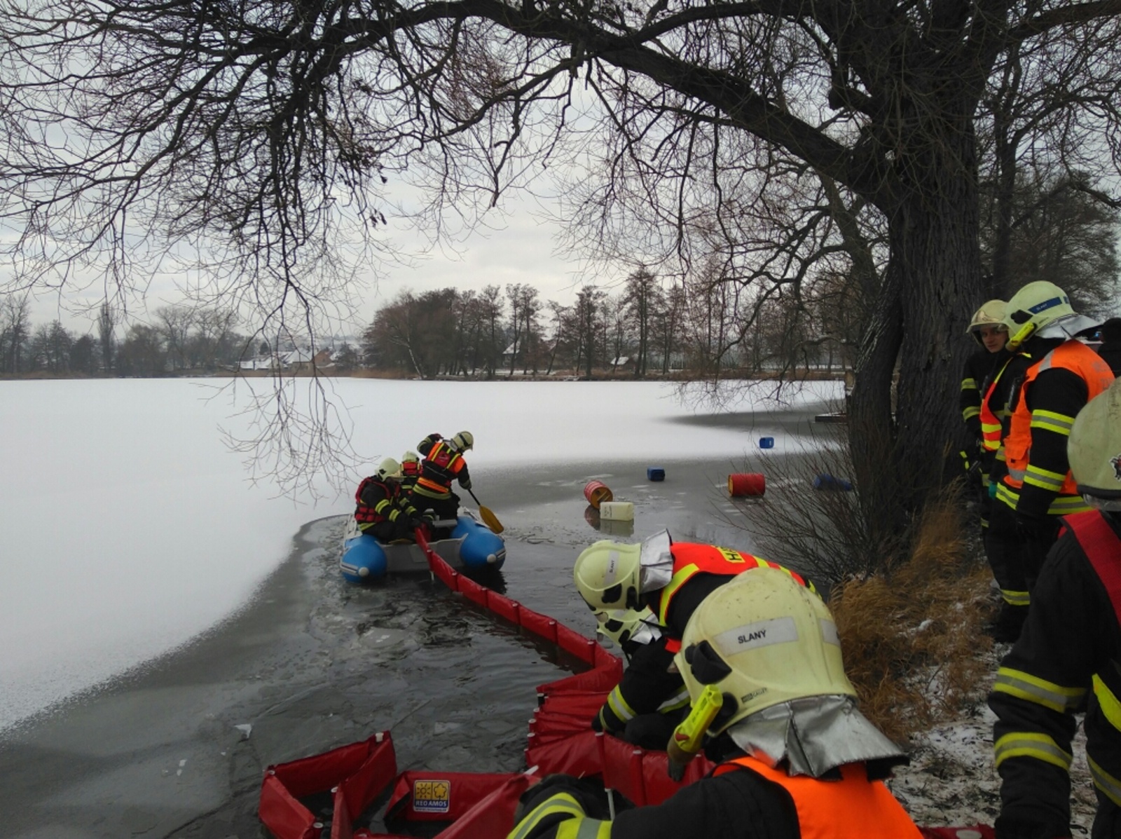Dodávkový automobil označený dle předpisů ADR převážel velké množství ropných hořlavých látek, které znečistily přilehlou vodní plochu. Na místo vyjely profesionální jednotky ze Slaného a Stochova, kterým na pomoc vyrazily dobrovolné jednotky ze Mšece a Nového Strašecí. Cvičení započala jednotka z Nového Strašecí, která pomocí hydraulického vyprošťovacího zařízení vyprostila zraněného řidiče. Místní hasiči ze Mšece se zase postarali o zamezení úniku látek z dodávky. Po dojezdu profesionálních jednotek byla vyproštěné osobě poskytnuta předlékařská pomoc a tepelný komfort. Po ošetření zraněného byl na vodní hladinu nasazen člun, připraveny norné stěny a sorpční materiál, kterými byla ropná skvrna ohraničena a zlikvidována.
