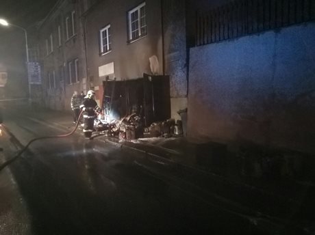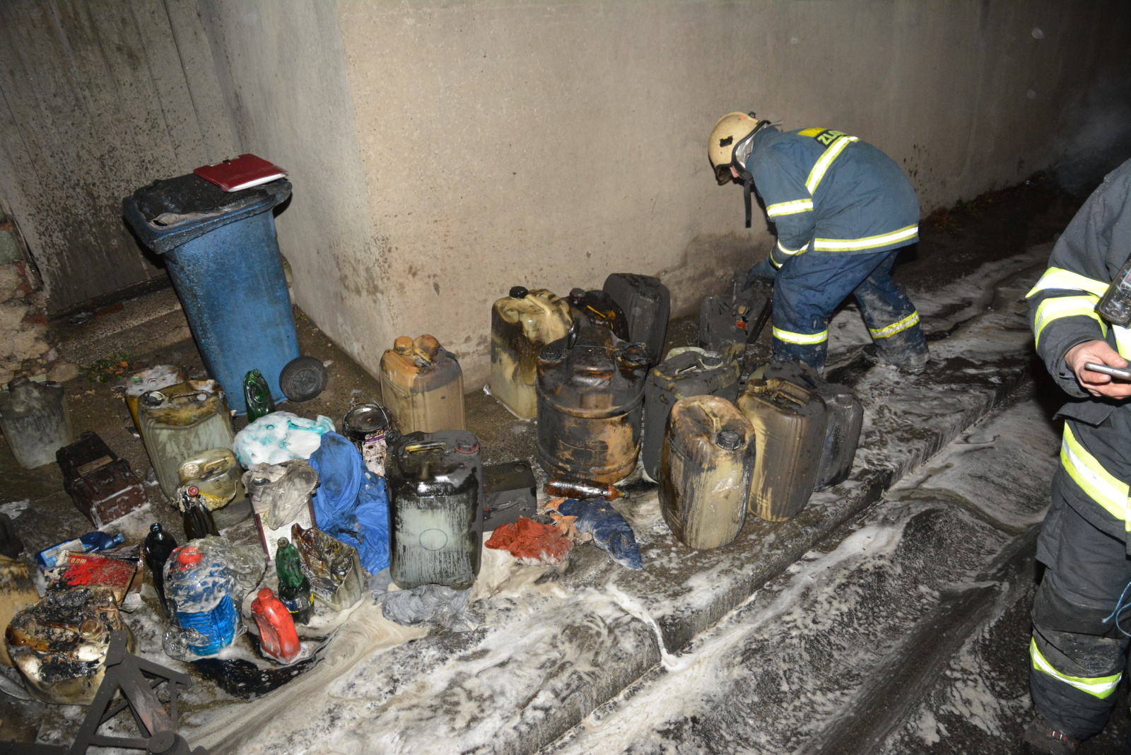 Ve stejný den v 18:27 hodin se ozvalo troubení nákladních automobilů a bušení na vrata hasičské stanice ve Slaném. Několik desítek metrů od stanice došlo k explozivnímu hoření v garáži rodinného domu, odkud šlehaly desetimetrové plameny. Bleskový příjezd jednotky ve dvou minutách od oznámení události zabránil požáru roztékajícího se benzinu do kanalizace. Jednotka na místě zasahovala v dýchací technice dvěma vysokotlakými proudy s přimísením pěnidla. Po zahájení zásahu byl na místě nalezen popálený muž, který však v šoku zaběhl do domu a jednotka se jej ihned vydala hledat. Naštěstí byl po krátké chvilce nalezen a zachráněn. S popáleninami druhého stupně na třiceti procentech těla byl transportován na popáleninové centrum do nemocnice v Praze na Vinohradech. Následky požáru byly umocněny naměřenou výbušnou koncentrací v kanalizaci, což si vyžádalo uzavření celé Lázeňské ulice, nasazení ventilátorů dovezených ze stanic Kladno a Rakovník do výbušného prostředí a také povolání firmy Dekonta, která odčerpala kontaminovanou vodu.