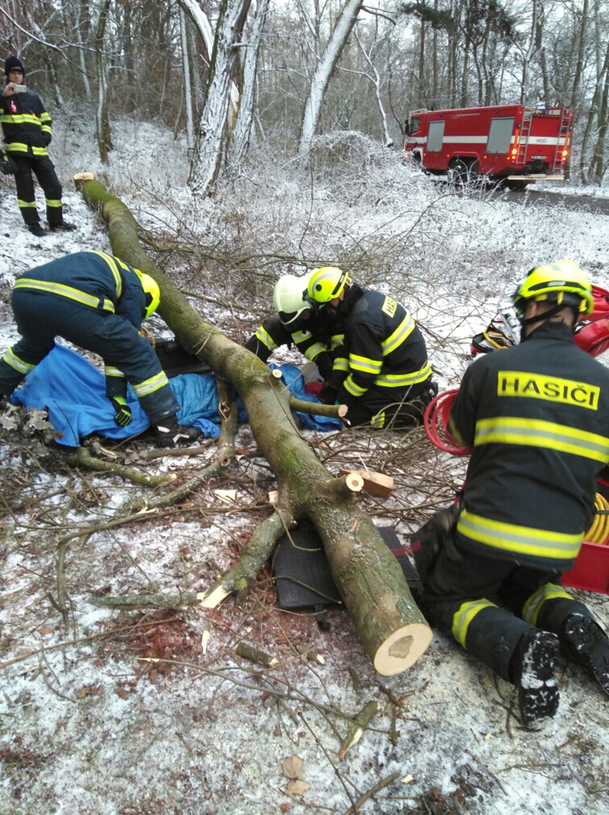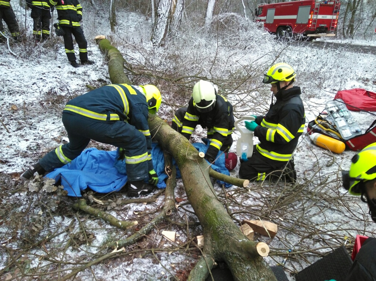 V úterý 19. prosince v 8:03 hodin vyjela profesionální jednotka ze Slaného spolu s dobrovolnou jednotkou ze Zlonic k prověřovacímu cvičení na okraji obce, kde strom zavalil dělníka při kácení.