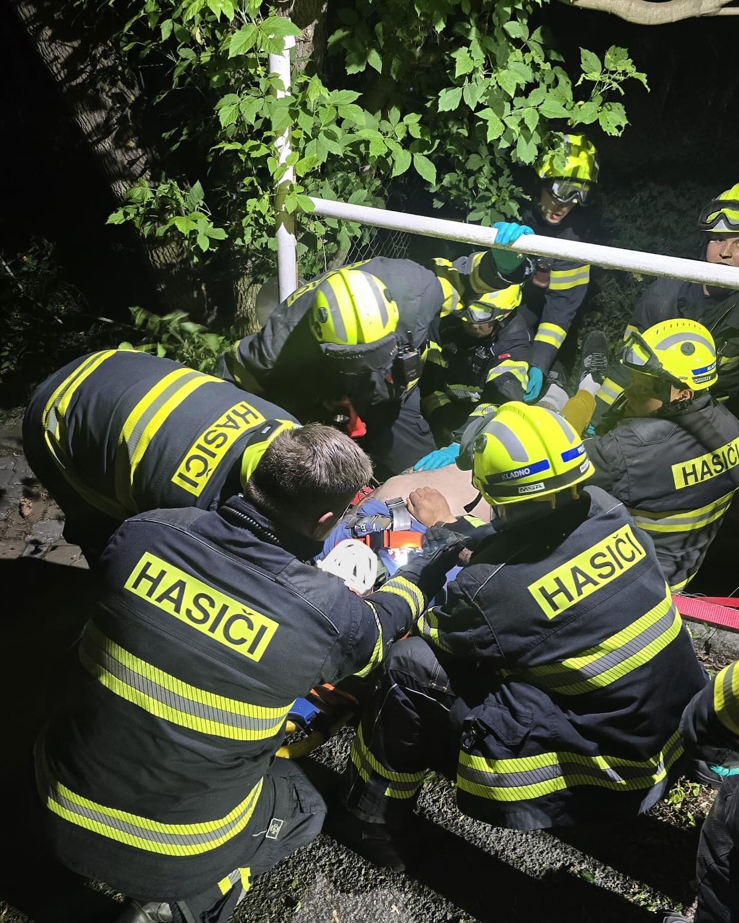 Zásah trval více než třicet minut. Celou dobu byli záchranáři v úzkém kontaktu se zraněnou osobou, kterou se jim nakonec podařilo bezpečně dostat ven. Následně byla ihned předána zdravotnické záchranné službě, která ji převezla do kladenské nemocnice. Podrobnosti o jejím zdravotním stavu zatím nejsou známy.