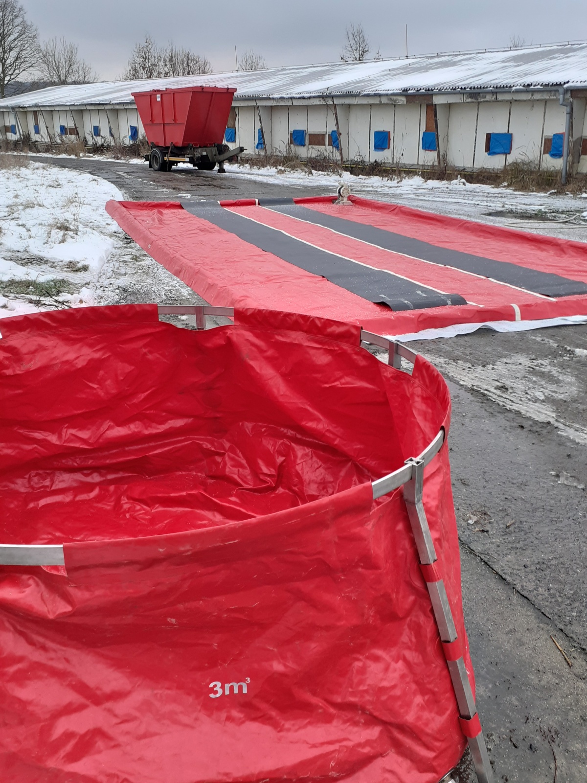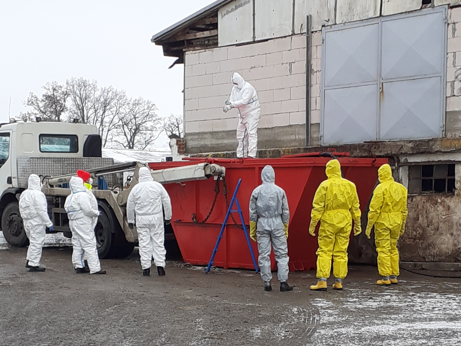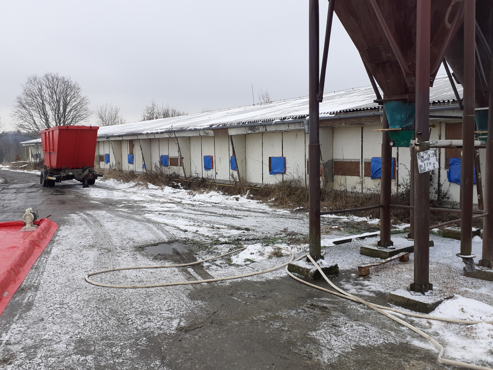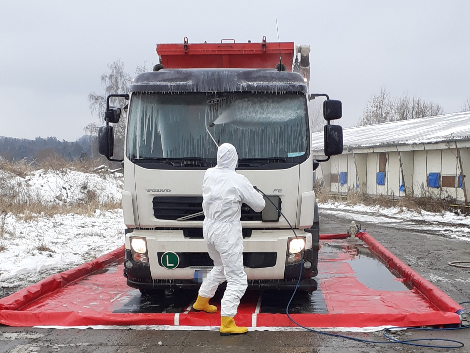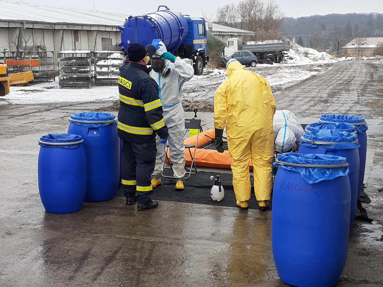 Nejdříve byla vybudována dekontaminační stanoviště, a to jednak pro zasahující a také pro techniku, která se na likvidaci podílela. Veterinární správa na místo zajistila čtyři kontejnery, ve kterých mělo dojít k usmrcování kachen.