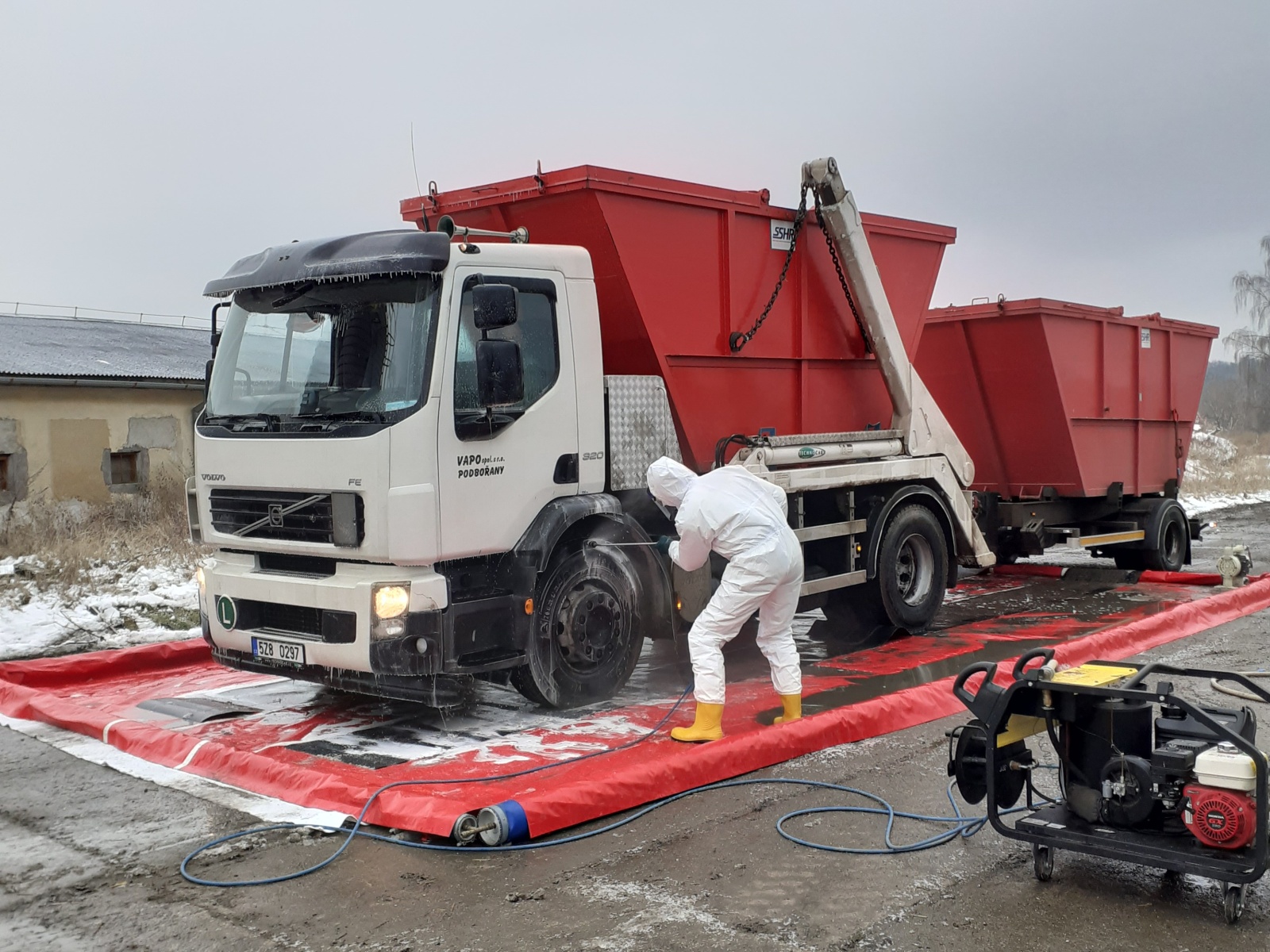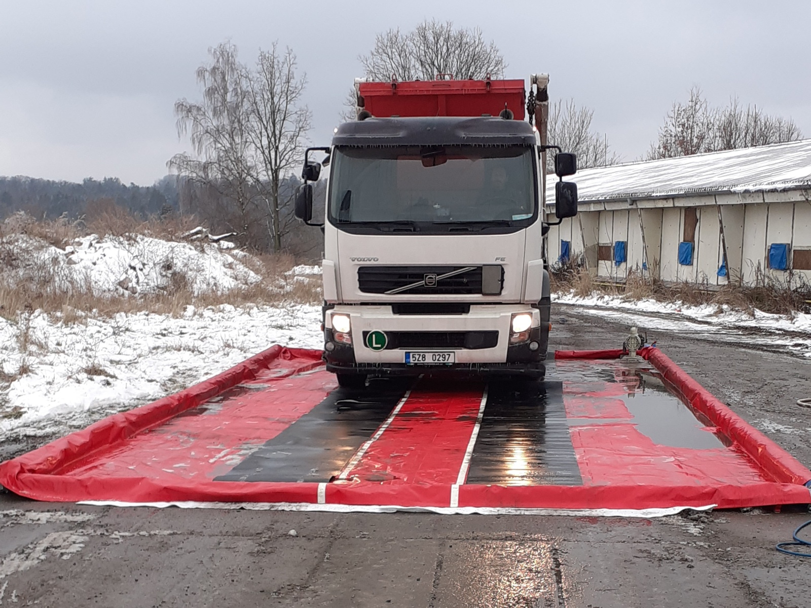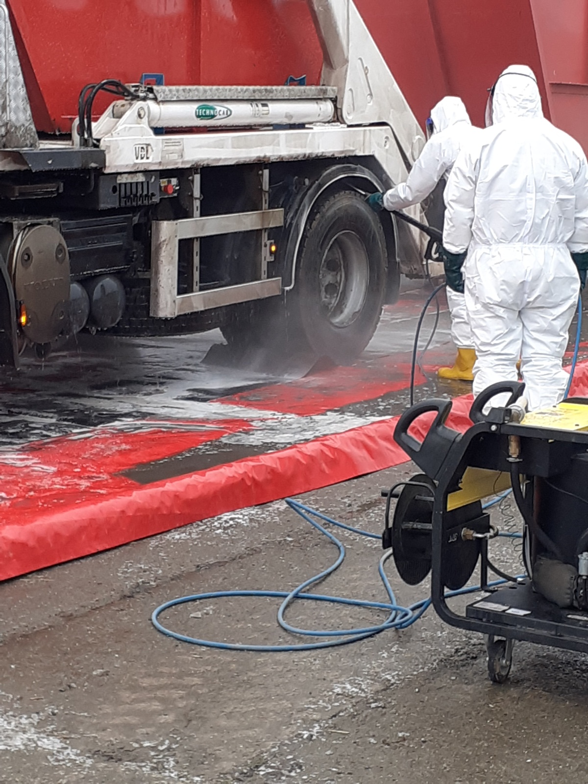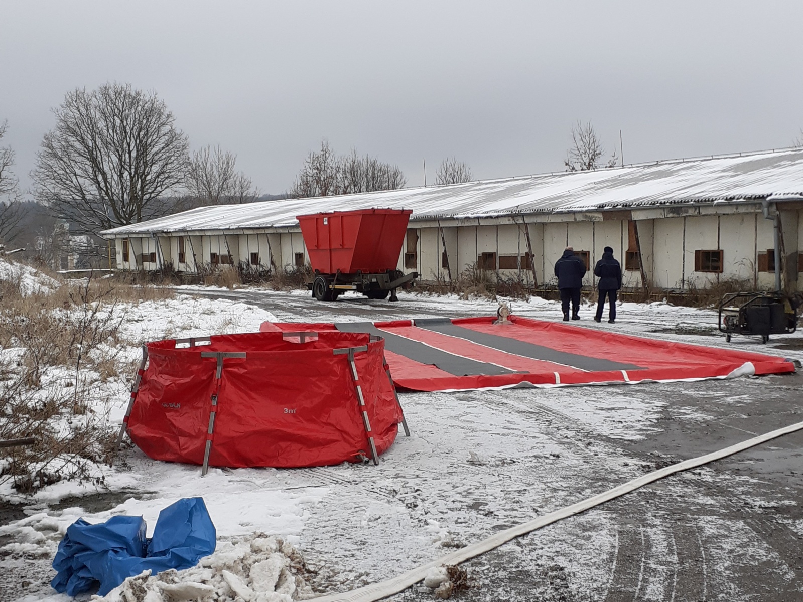 Nejdříve byla vybudována dekontaminační stanoviště, a to jednak pro zasahující a také pro techniku, která se na likvidaci podílela. Veterinární správa na místo zajistila čtyři kontejnery, ve kterých mělo dojít k usmrcování kachen.