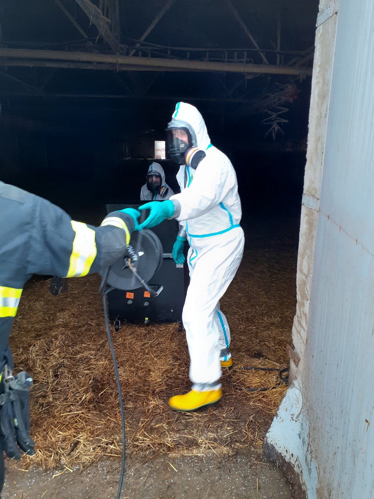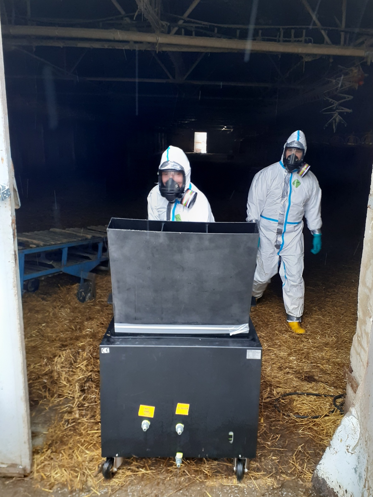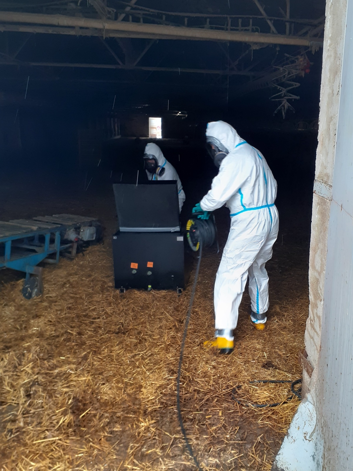 Obě prázdné haly byly neprodyšně uzavřeny a z preventivních důvodů desinfikovány pomocí ultrazvukových přístrojů. Když byla vyklizena třetí hala, čekala ji desinfekce také. Poté bylo možné začít balit veškerý použitý materiál a začít s plošnou desinfekcí celého objektu.