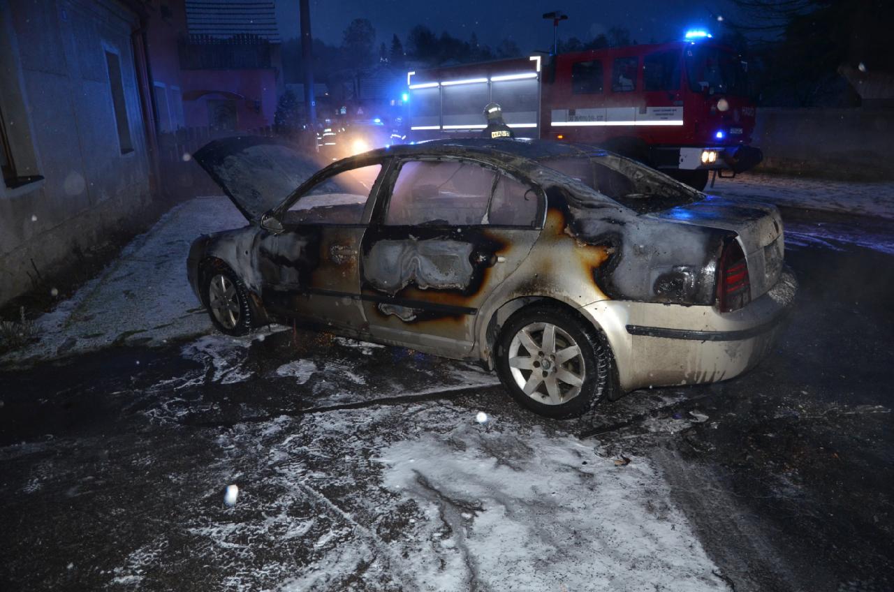 Dnes, 29.prosince 2017, ráno zasahovali hasiči u požáru osobního auta v obci Družec na Kladensku, v centru u prodejny COOP: