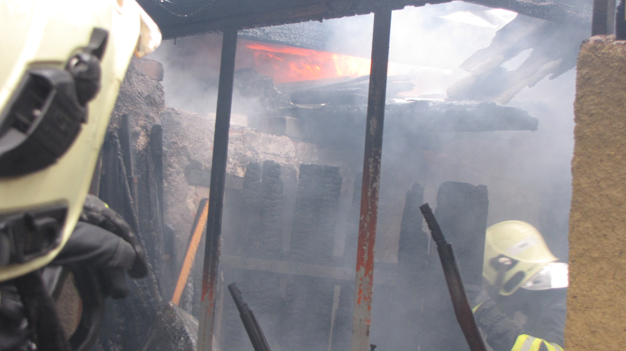 Hasiči průzkumem zjistili požár zděné kůlny a garáže o půdorysných rozměrech 11 x 4 metry. Uvnitř se nacházely 2 autogenní svařovací soupravy (2x tlaková láhev s kyslíkem a 2x tlaková láhev a acetylenem). U acetylenových tlakových lahví došlo v důsledku okolního požáru k nárůstu teploty povrchu nad 65°C. Tím bylo zahájeno uvolňování acetylenu a jeho samovolný rozklad na vodík a uhlík. Díky tomu hrozila destrukce obou tlakových lahví. Hasiči je proto intenzivně ochlazovali pomocí vodního proudu. Následně je za účelem zvýšení účinnosti chlazení přemístili do bazénu, do kterého před tím napustili cca 25 cm vody z cisteren. Zde bude, v souladu s taktickými postupy, ochlazována 24 hodin. Po transportu obou lahví došlo k úplnému dohašení požáru.