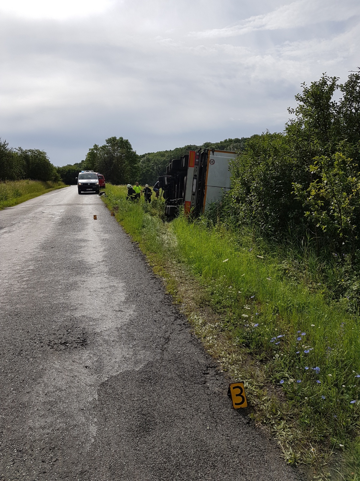 V pondělí 24. července dvě minuty po deváté hodině byla na Krajské operační a informační středisko HZS Středočeského kraje ohlášena dopravní nehoda nákladního vozidla mezi obcemi Domousnice a Veselice.