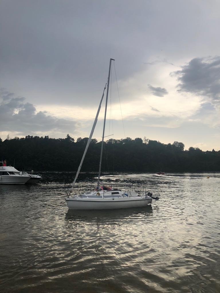 Velitel zásahu po příjezdu na místo informoval, že jde o plachetnici, která je převrácená dnem vzhůru. Při nehodě na lodi plul muž se ženou a malým dítětem. Po příjezdu na místo nebylo zřejmé, zda se v lodi ještě někdo nenachází. Při záchraně hasiči spolupracovali s Policií ČR a plavební správou. Hasiči v oblecích do vody provedli průzkum potopené lodi a zjistili, že uvnitř se už nikdo další nenachází, všichni tři byli bez zranění a v bezpečí.