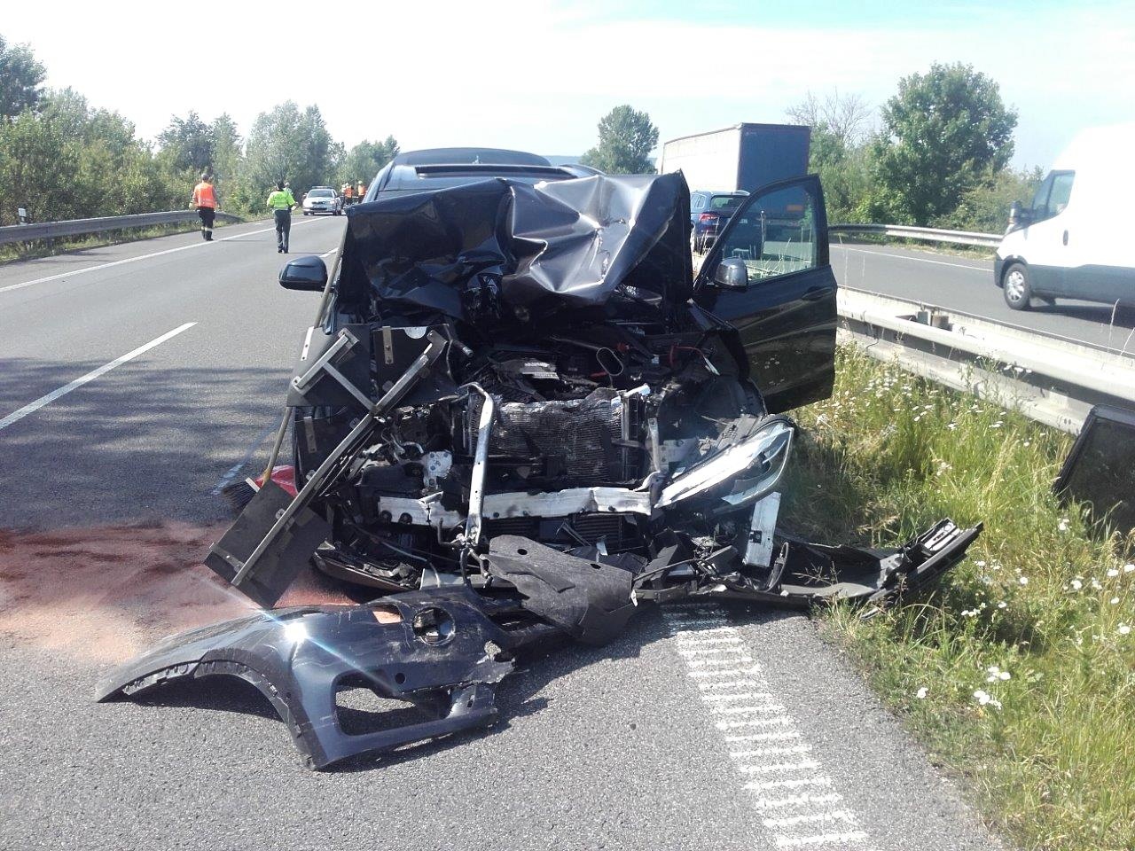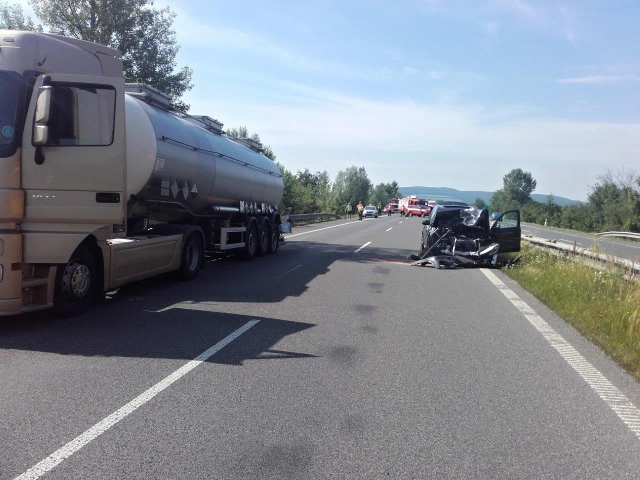 Hasiči u cisterny zasypali sorbentem jen menší únik oleje, který ovšem nebyl z provozních náplní. Jak se ukázalo, řidič měl malý kanystr jako rezervu na dolití ve schránce na boku vozidla právě v místě, do kterého osobní auto narazilo. Dálnice byla po nezbytně nutnou dobu v uvedeném směru zcela uzavřena. Částečně obnovit provoz se podařilo po 11. hodině, kdy hasiči pomohli s naložením osobního automobilu na odtahovou službu.