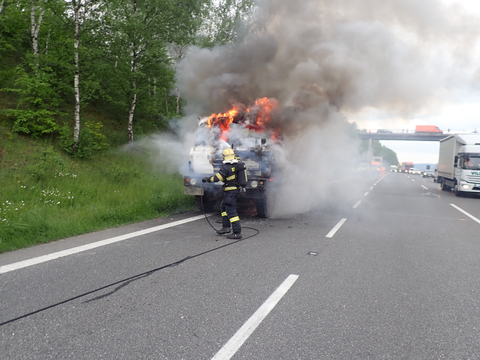 Ve středu 20. května pět minut před patnáctou hodinou byl na linku tísňového volání HZS Středočeského kraje oznámen požár nákladního vozidla na plzeňské dálnici D5 poblíž kilometru 6,5 ve směru do Prahy.