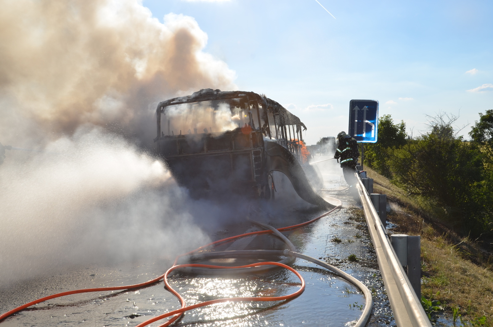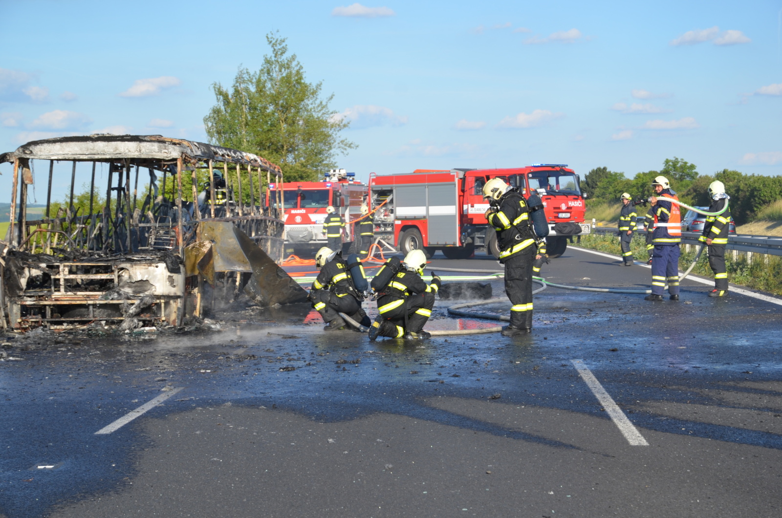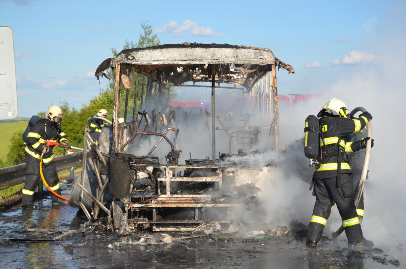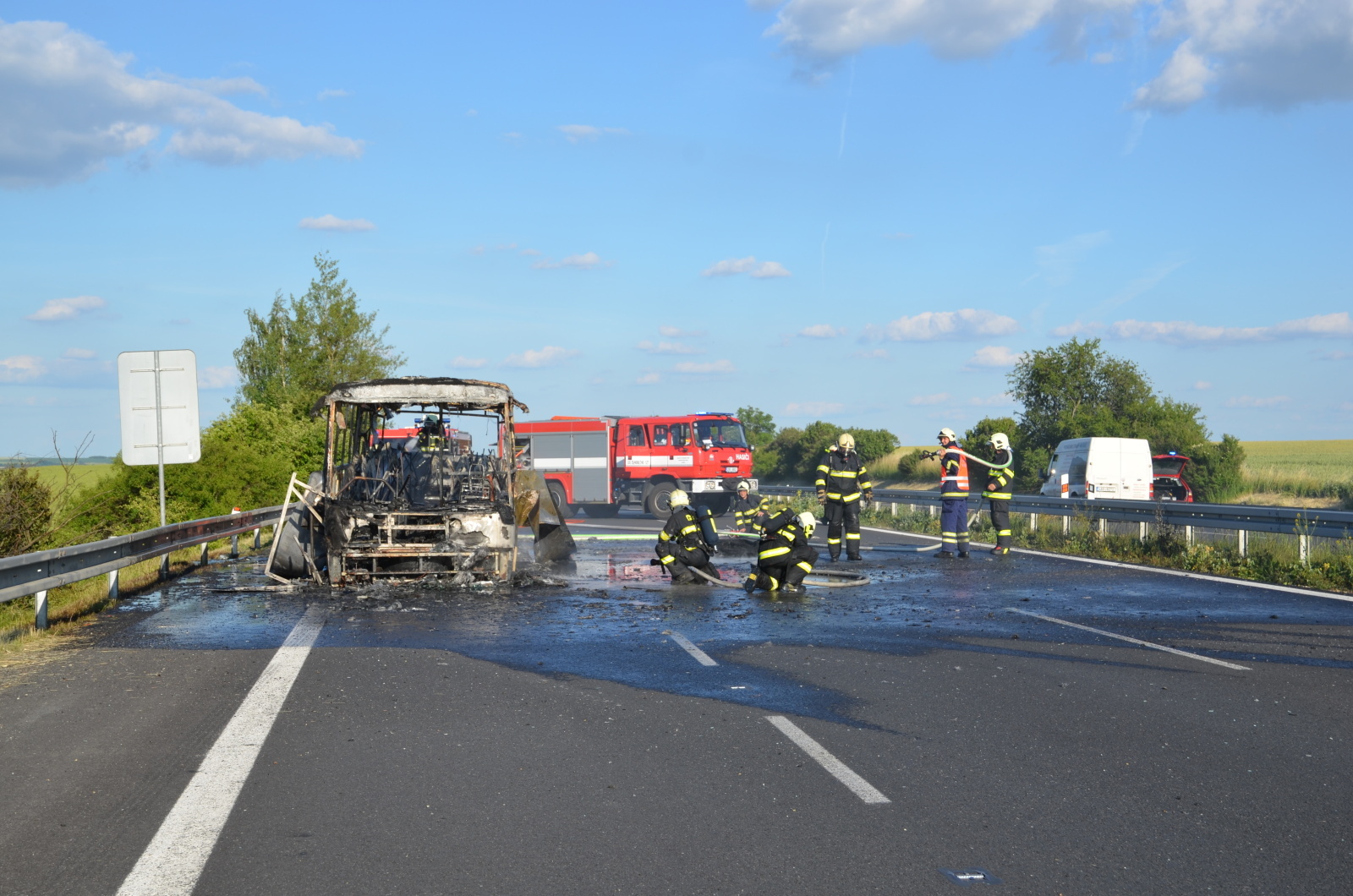 V neděli 18. června v podvečer přijala třináct minut po osmnácté hodině tísňová linka HZS Středočeského kraje oznámení o požáru autobusu na dálnici D7 poblíž 14. kilometru ve směru z Prahy do Chomutova.