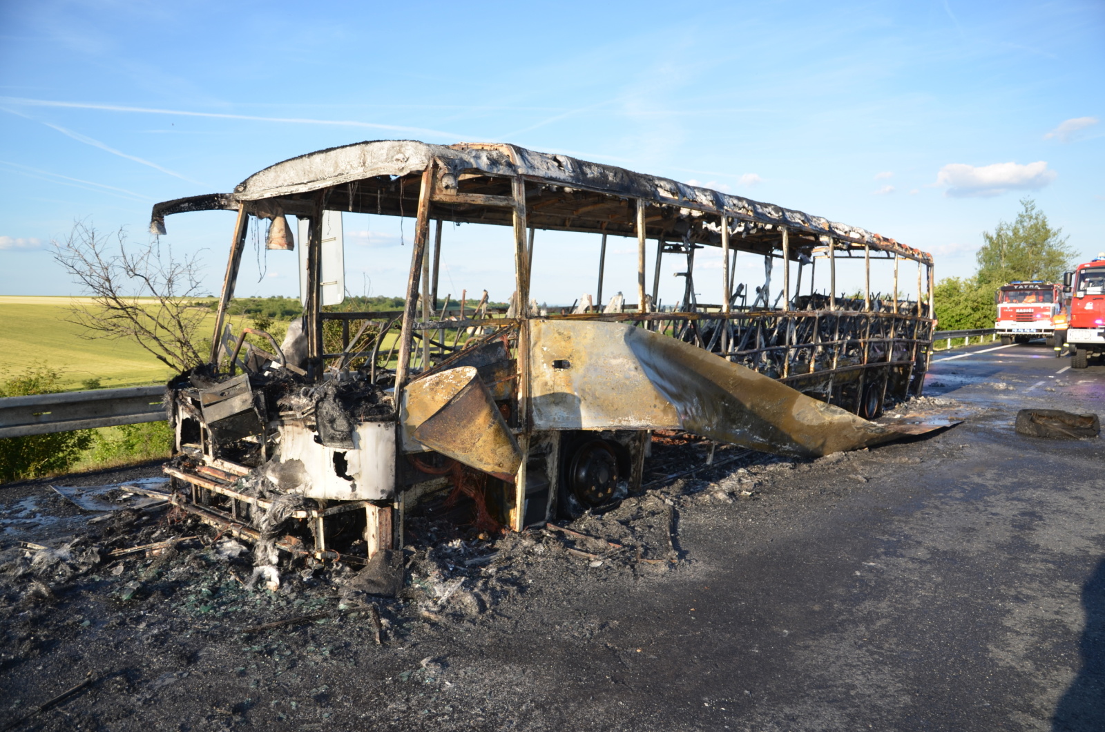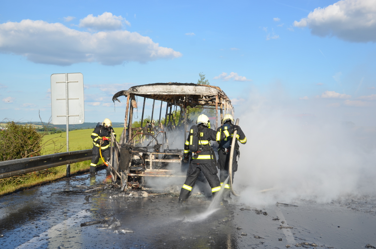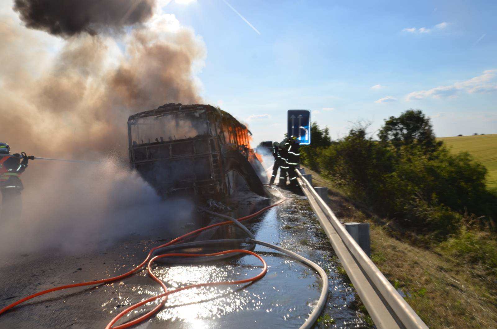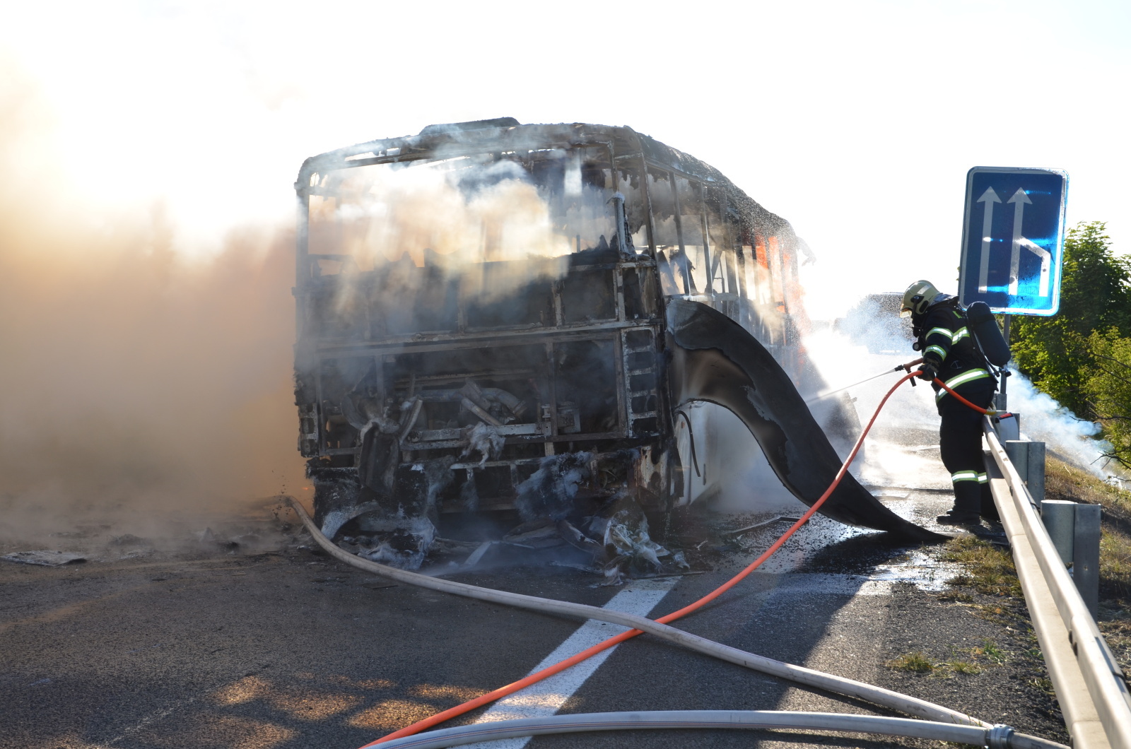 V neděli 18. června v podvečer přijala třináct minut po osmnácté hodině tísňová linka HZS Středočeského kraje oznámení o požáru autobusu na dálnici D7 poblíž 14. kilometru ve směru z Prahy do Chomutova.
