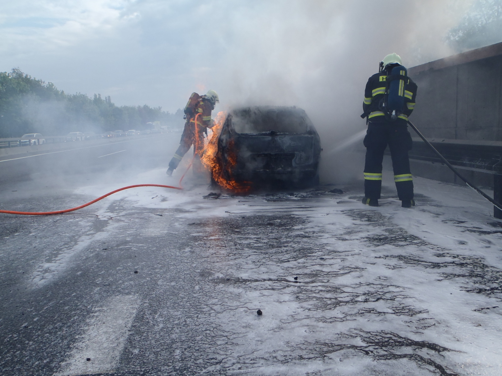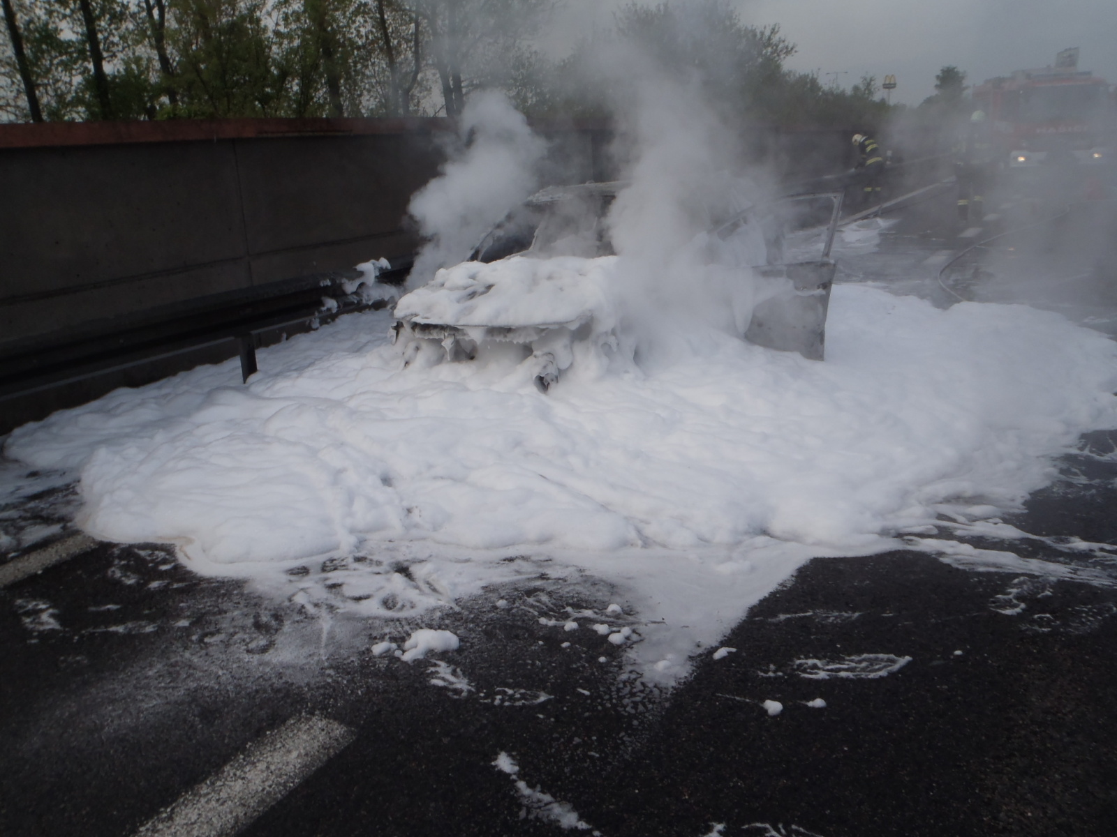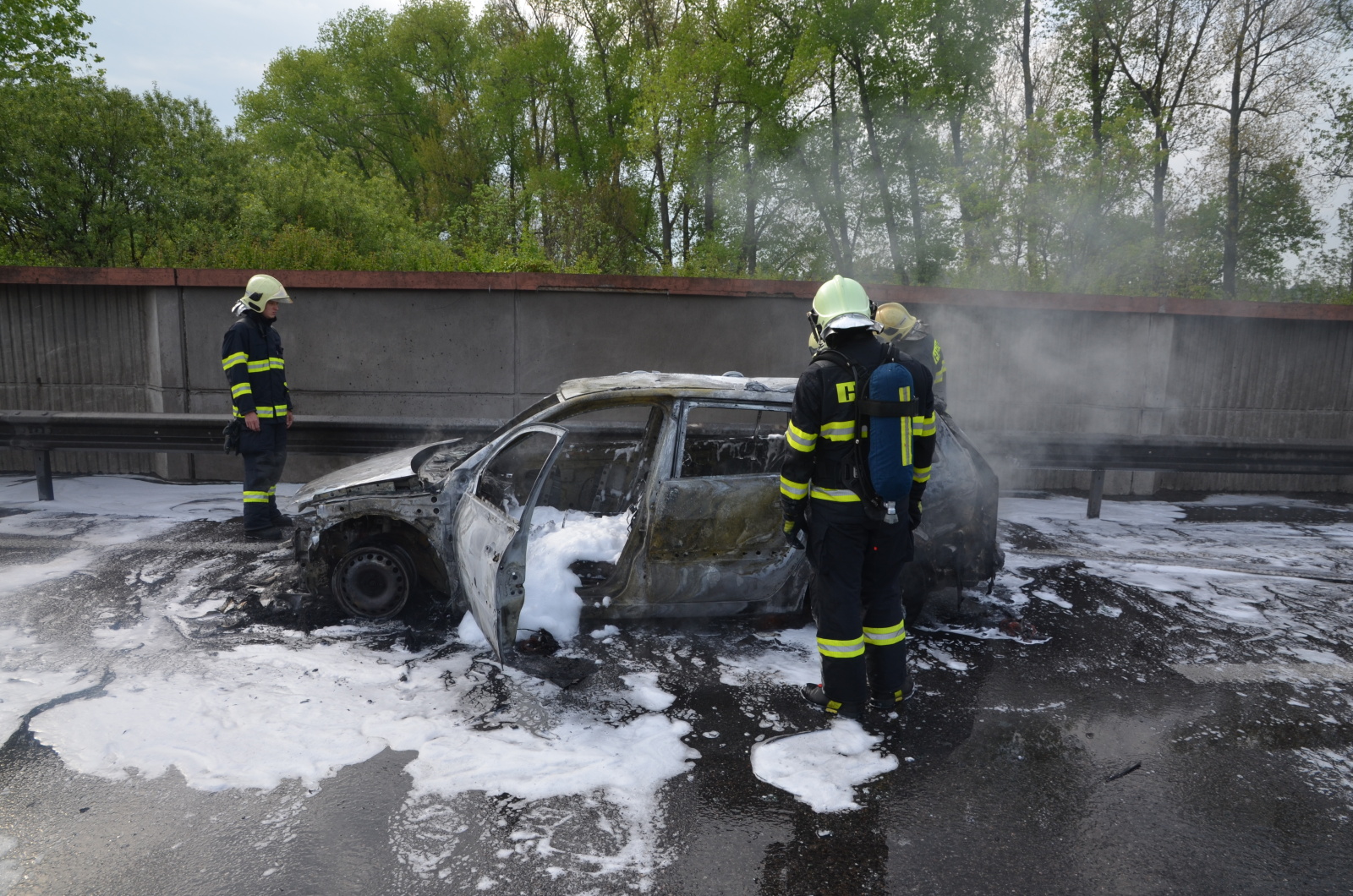 V době příjezdu berounských profesionálů už u požáru zasahovala vysokotlakým proudem se smáčedlem z CAS 20 T – 815 dobrovolná jednotka z Prahy Chodova, která náhodou projížděla kolem. Šlo o požár osobního vozu v plném rozsahu, který se podařilo lokalizovat v 8.45 hodin. Jednotka z Berouna na konečnou likvidaci požáru nasadila ještě jeden vysokotlaký proud z CAS 15 – MB a pěnící zařízení PRO/pak. Kolem místa zásahu hasiči položili sorpčního hada, aby zabránili úniku hasební vody s pěnidlem do vodoteče.
