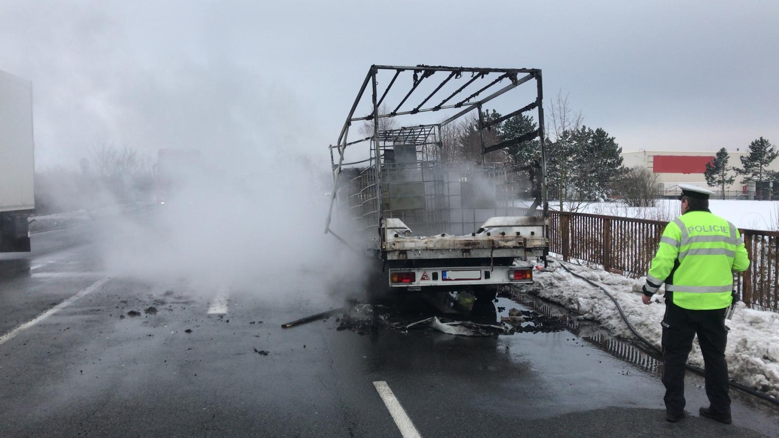 Nad hradeckou dálnicí u obce Jirny shořela dodávka