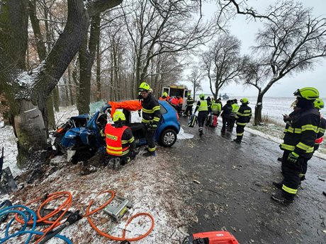 Už od páté hodiny ranní měli hasiči ve Středočeském kraji plné ruce práce. Do 9 hodin evidovali 23 výjezdů, převážně k dopravním nehodám způsobeným ranním mrazem a zhoršenou viditelností. Jedna z nejvážnějších se stala krátce před devátou mezi Novým Strašecím a Mšecí. Osobní automobil tam vyjel ze silnice a čelně narazil do stromu. Hovor na tísňové lince upozorňoval také na možný požár vozidla.