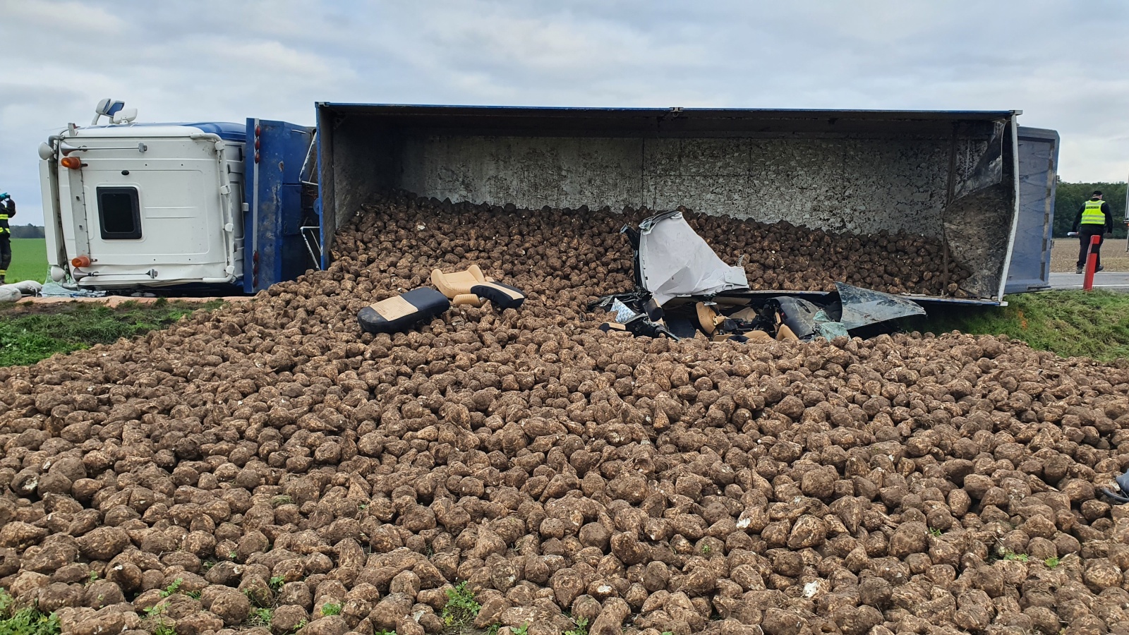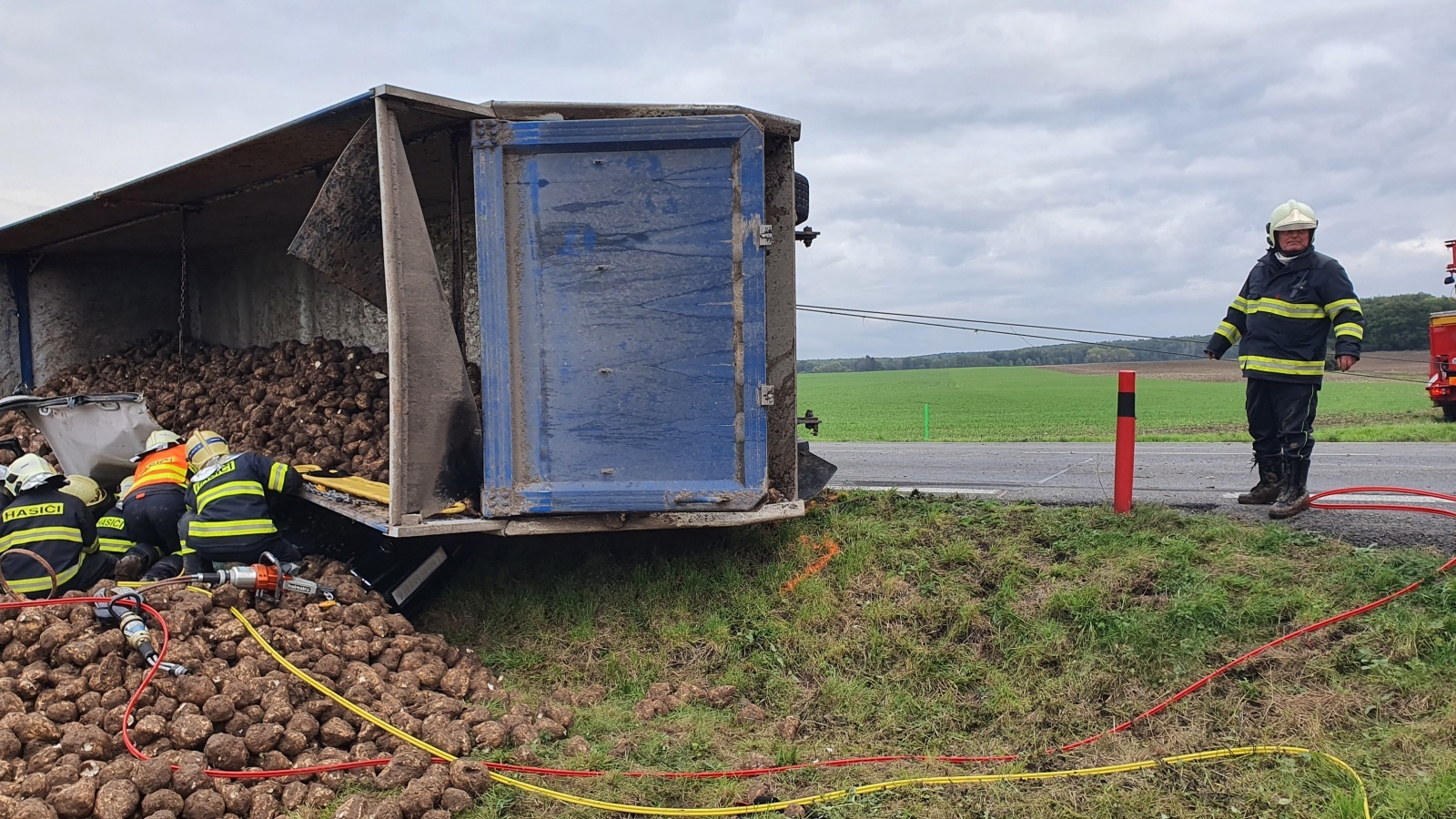 Hasiči dále provedli na obou vozidlech protipožární opatření, zasypali uniklé provozní kapaliny a zachytávali unikající naftu z nákladního automobilu. Jeho řidič, který z kolize vyvázl bez úrazu, sám zajistil přistavení dvou automobilových jeřábů na postavení kamionu zpět na kola a také nakladač na vyskladnění zbytku řepy.