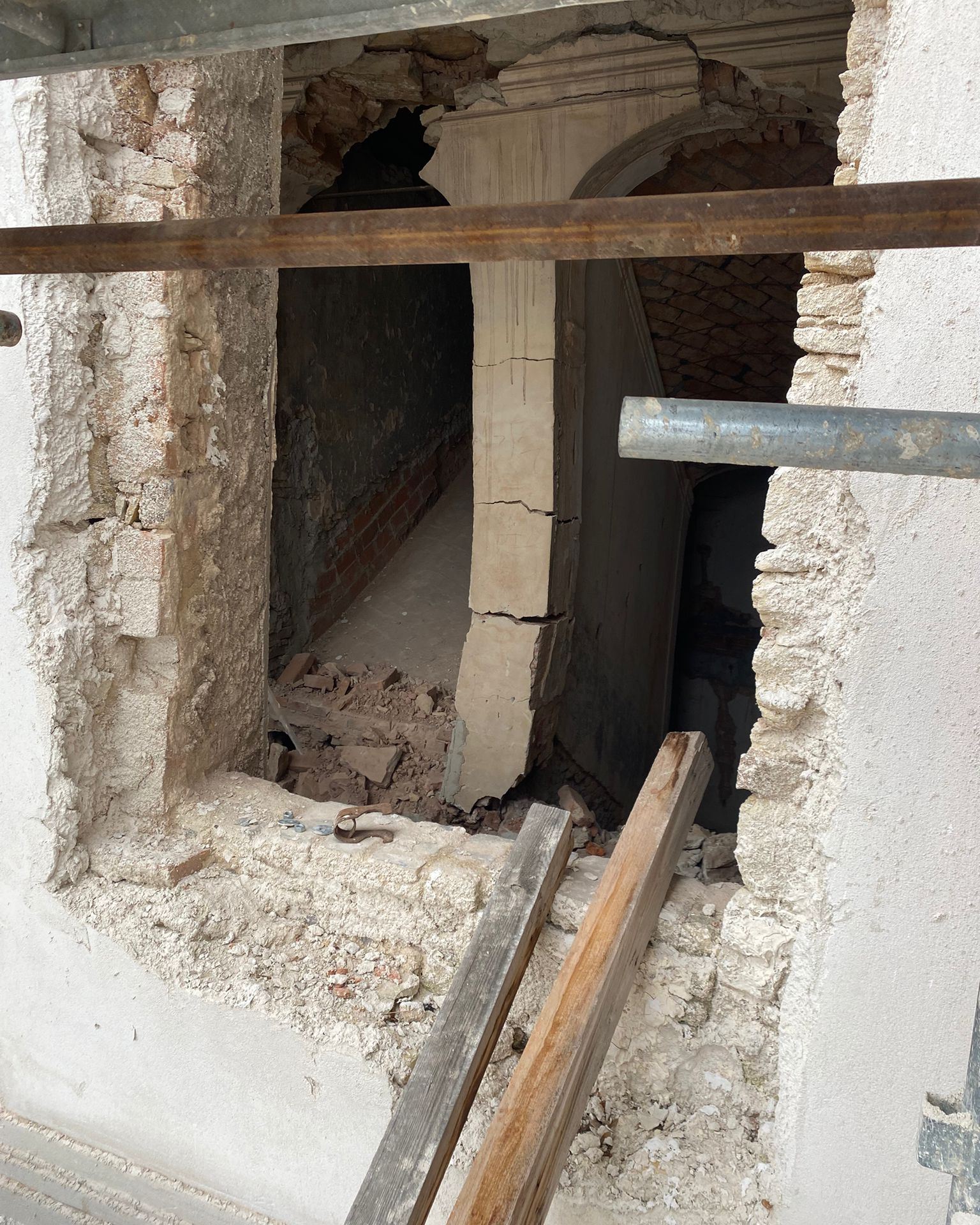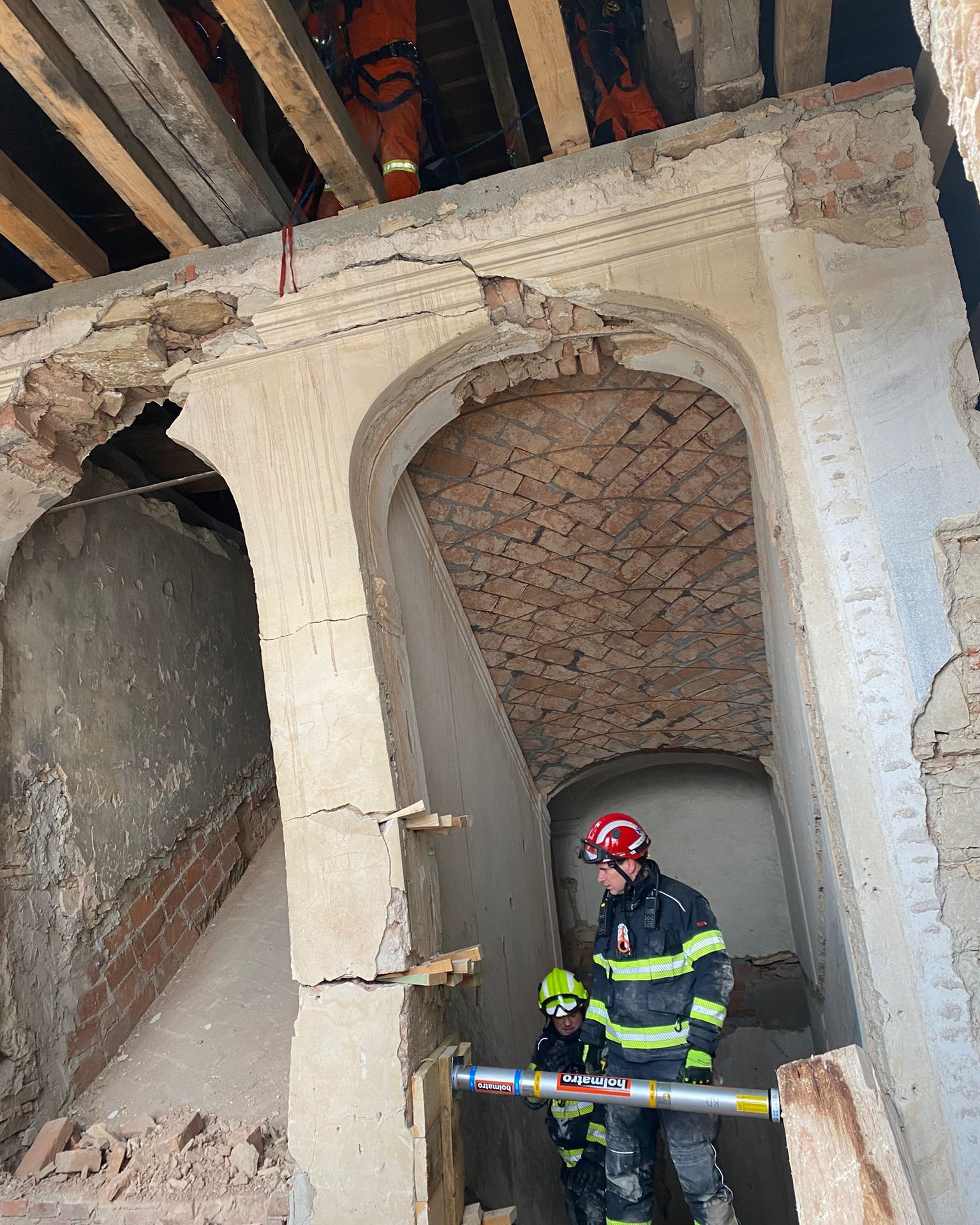Riziková situace během rekonstrukce historického zámku v Buštěhradu přivolala profesionální i dobrovolné hasiče. Po narušení nosného sloupu hrozilo další statické poškození.