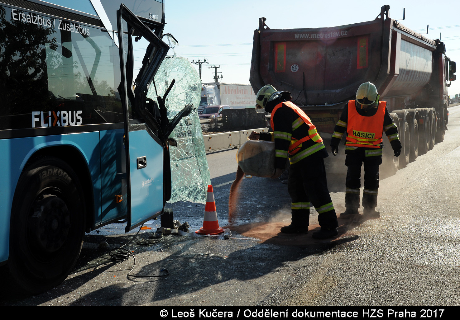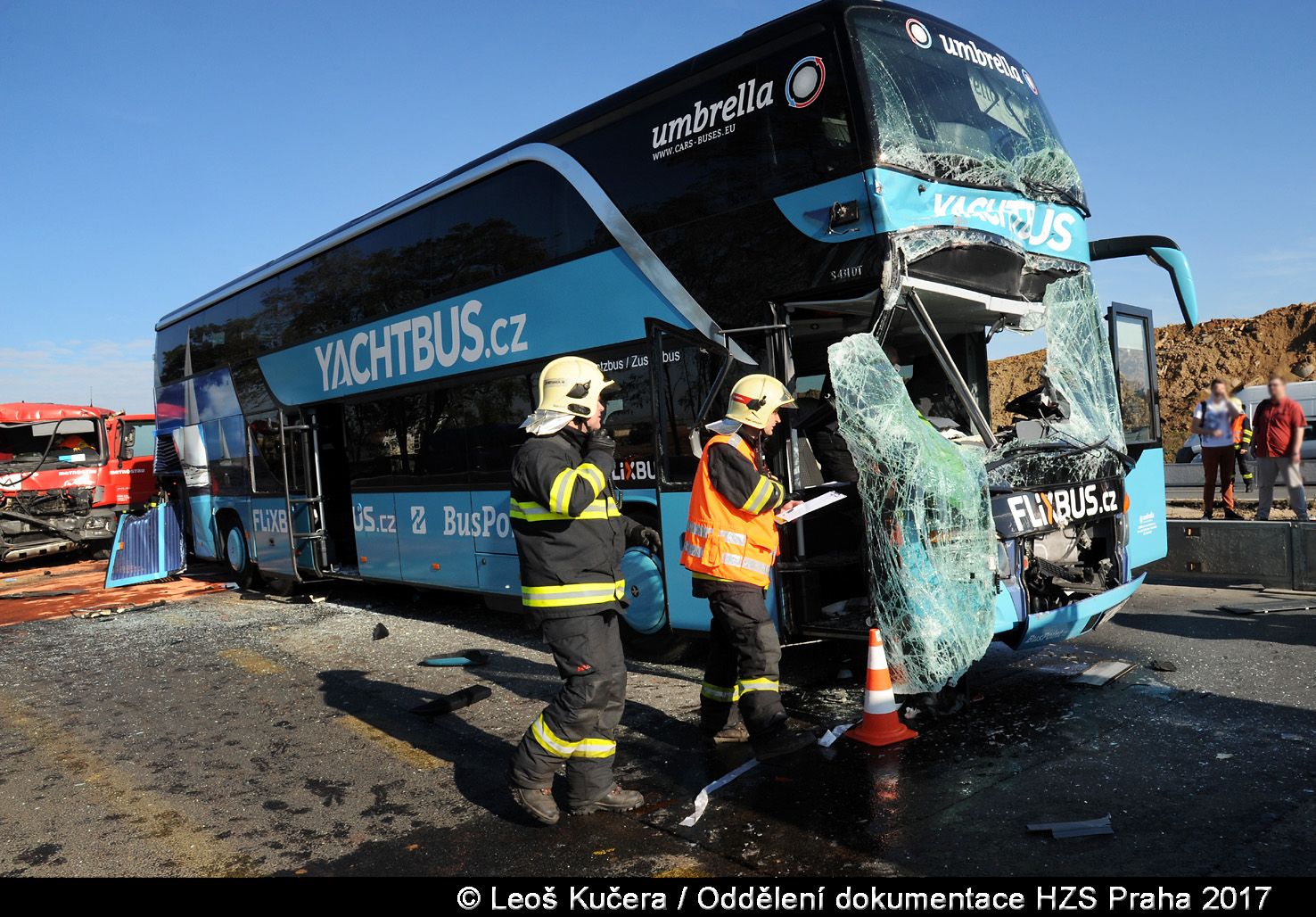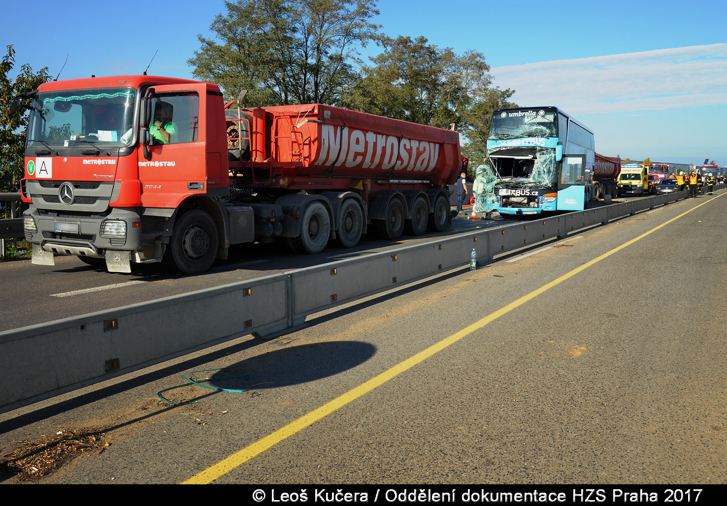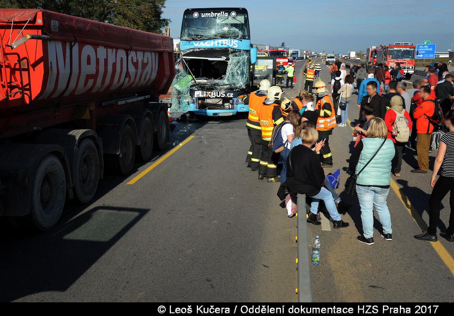 V sobotu 14. října 2017 v 10:16 hodin přijala tísňová linka HZS Středočeského kraje informaci o dopravní nehodě autobusu a nákladního automobilu před vjezdem do Prahy po dálnici D8 na prvním kilometru těsně za nájezdem od Zdib v okrese Praha-východ.