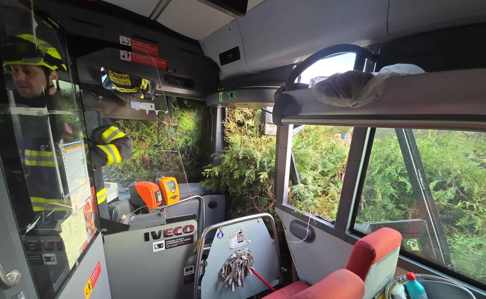 Nehoda autobusu způsobila nebezpečnou situaci pro všechny cestující na palubě. Vozidlo po nárazu zůstalo v nestabilní poloze a jeho dveře nešlo otevřít, což znemožnilo bezpečný výstup.