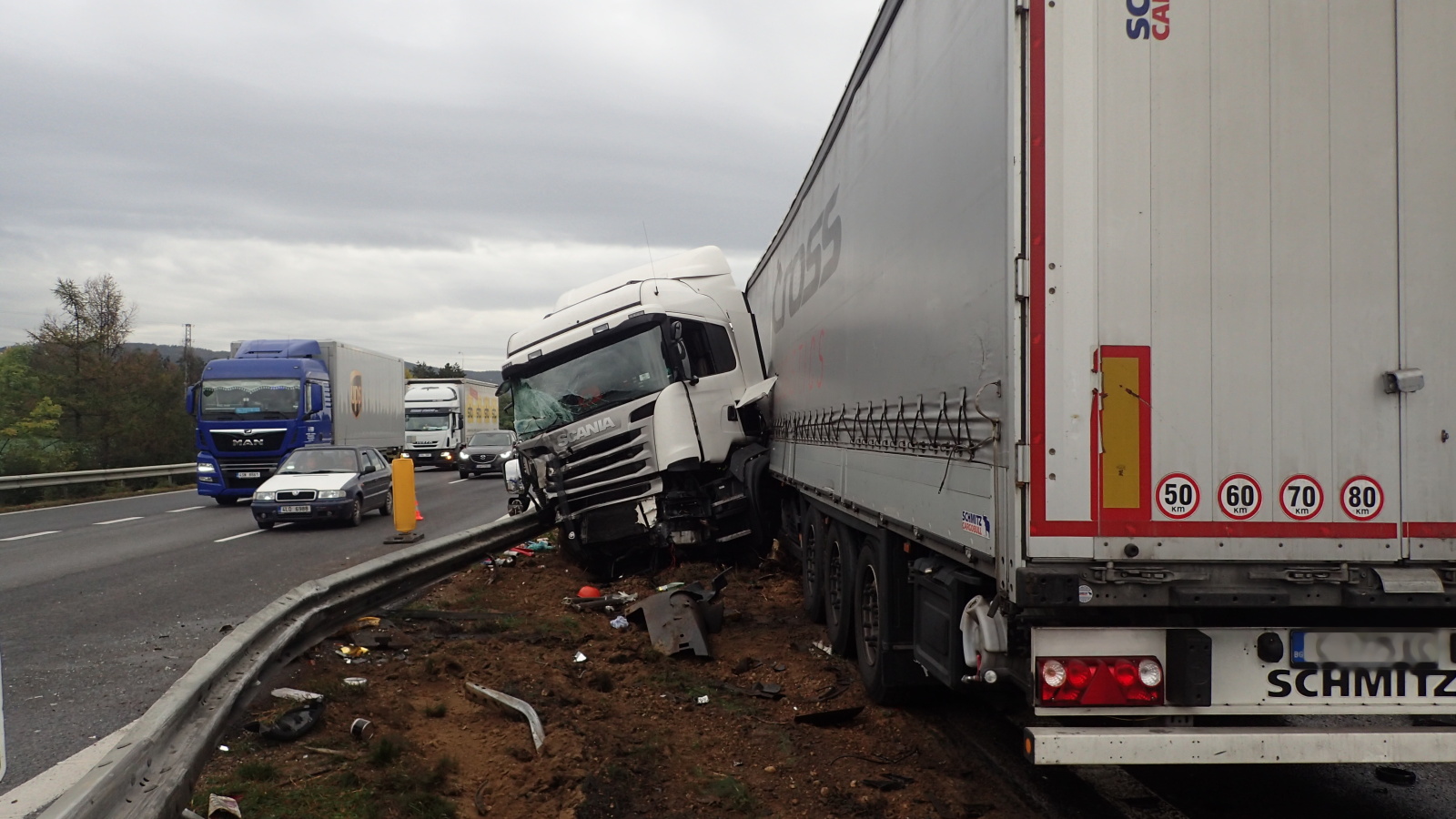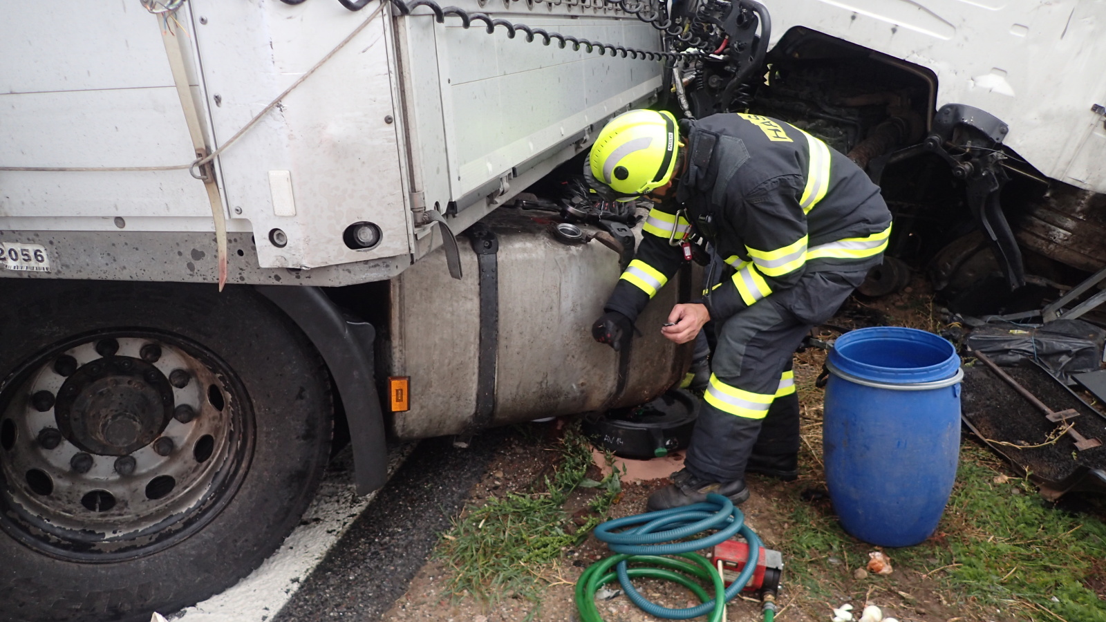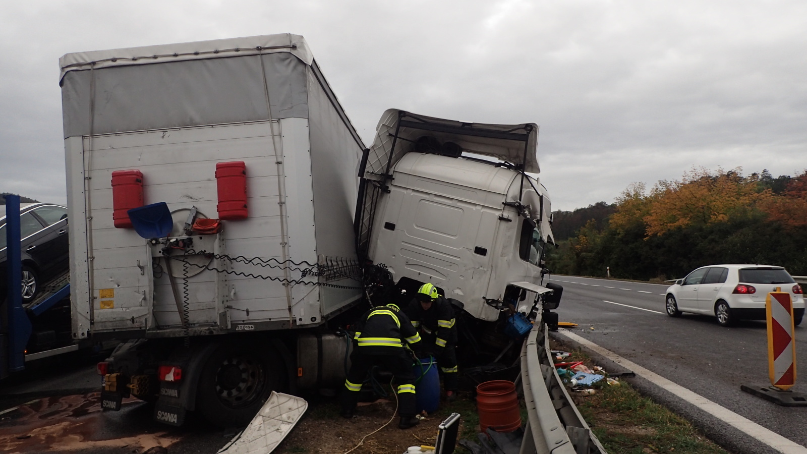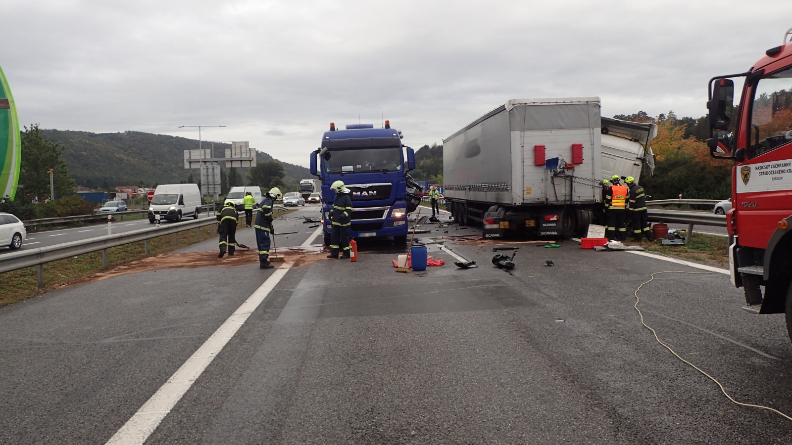 V pátek 27. září krátce před osmou hodinou ranní byla na linku tísňového volání Hasičského záchranného sboru Středočeského kraje oznámena dopravní nehoda dvou nákladních vozidel na dálnici D5 před exitem Beroun-západ ve směru do Prahy.