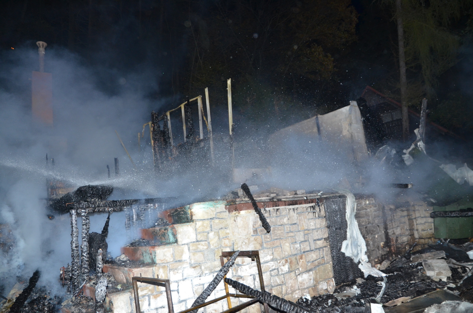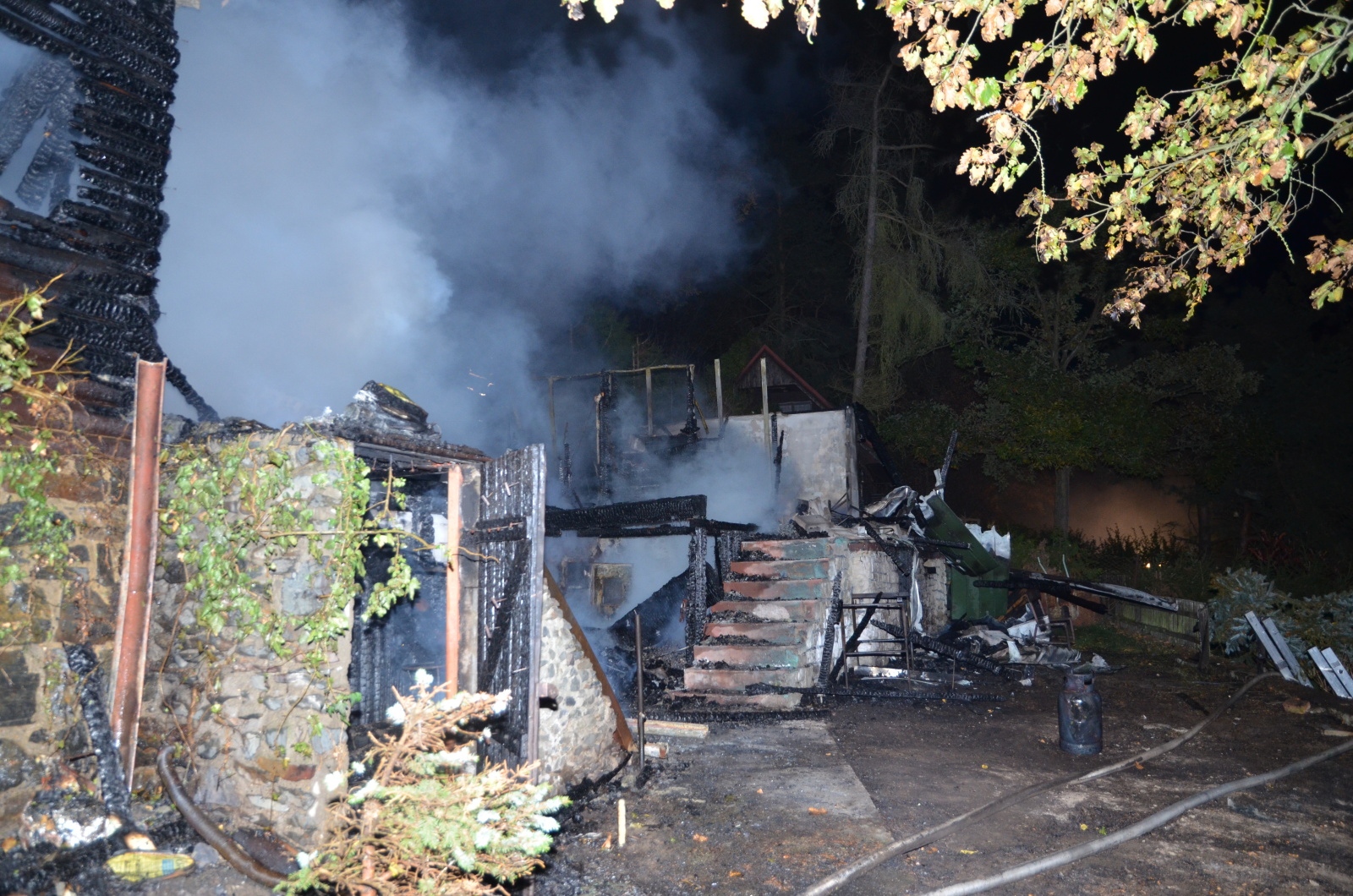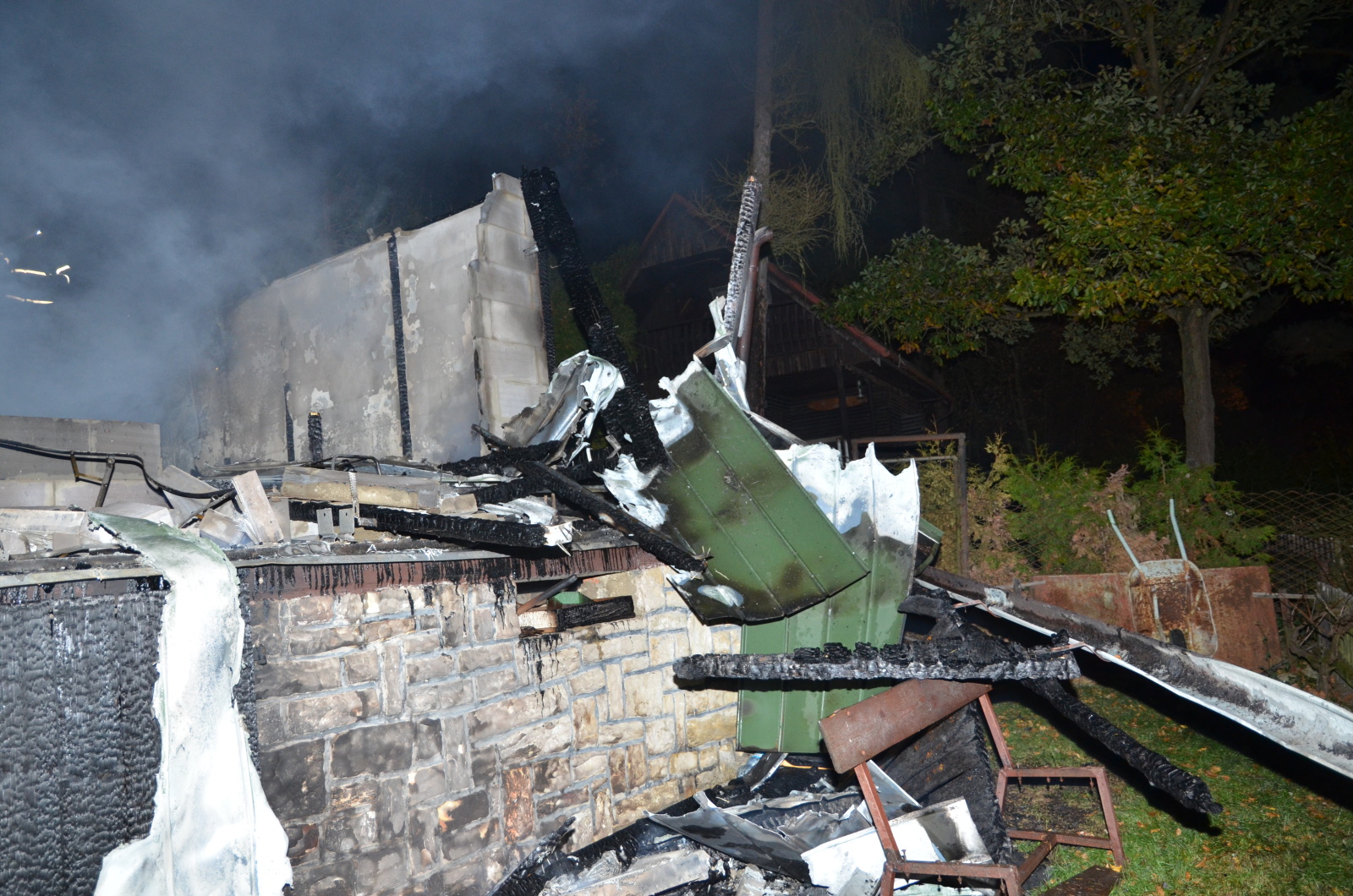 V době příjezdu první jednotky na místo byla požárem zcela zasažena jedna chata, část lesa a plameny už zasáhly i část druhé chaty. Hasiči požár lokalizovali pomocí C a D proudů asi za hodinu.
