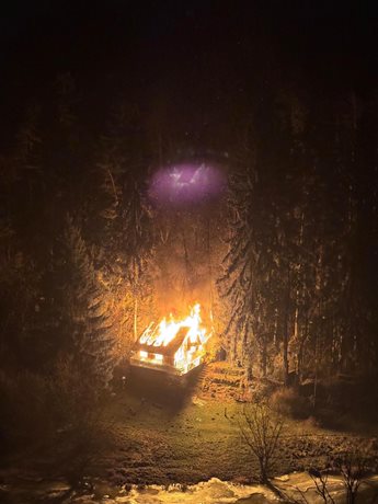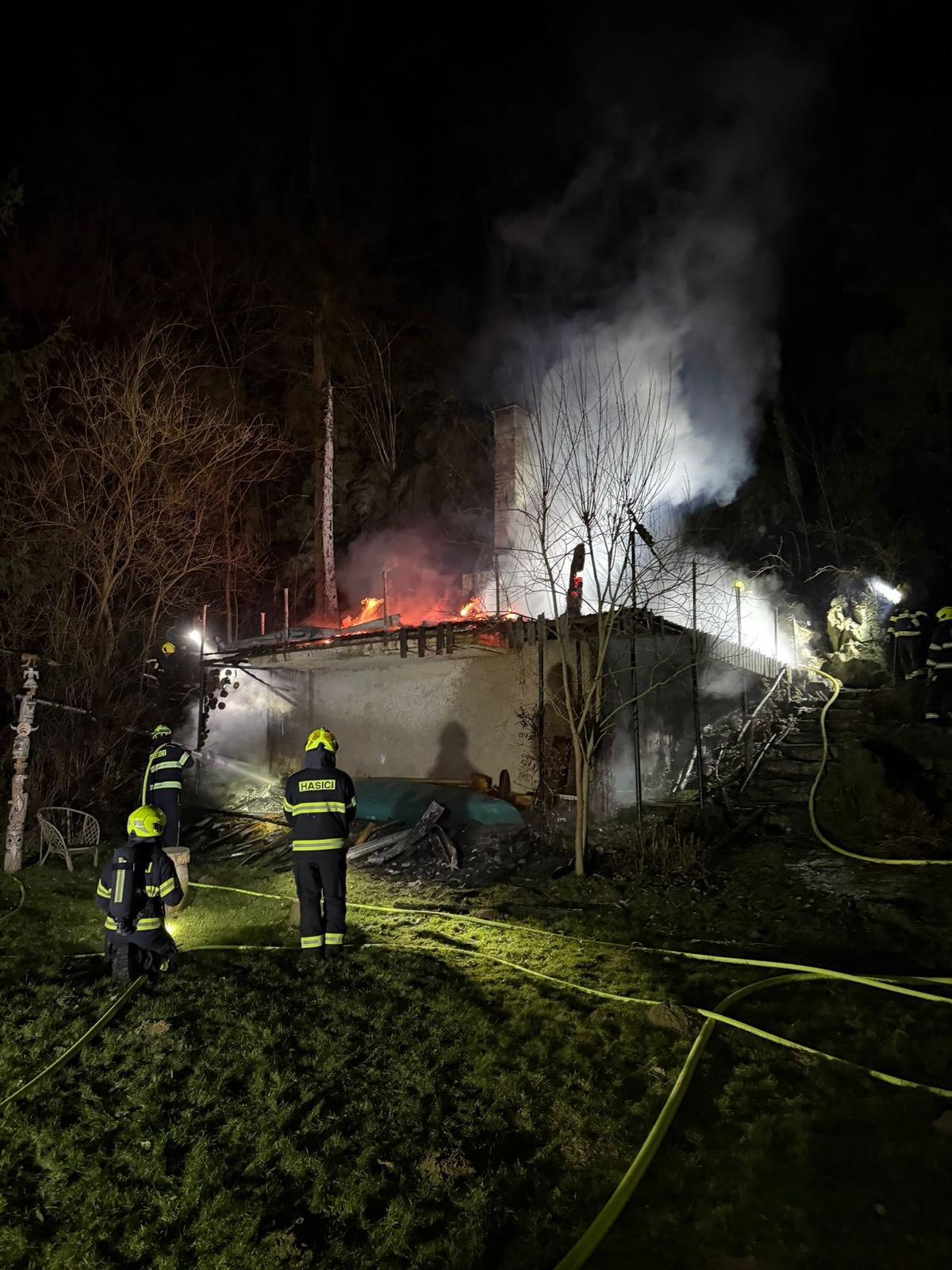 Noční požár chaty zcela pohltil objekt a způsobil statisícové škody