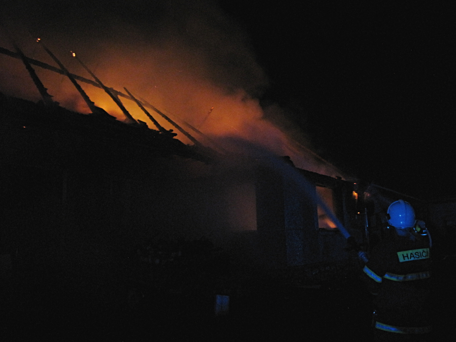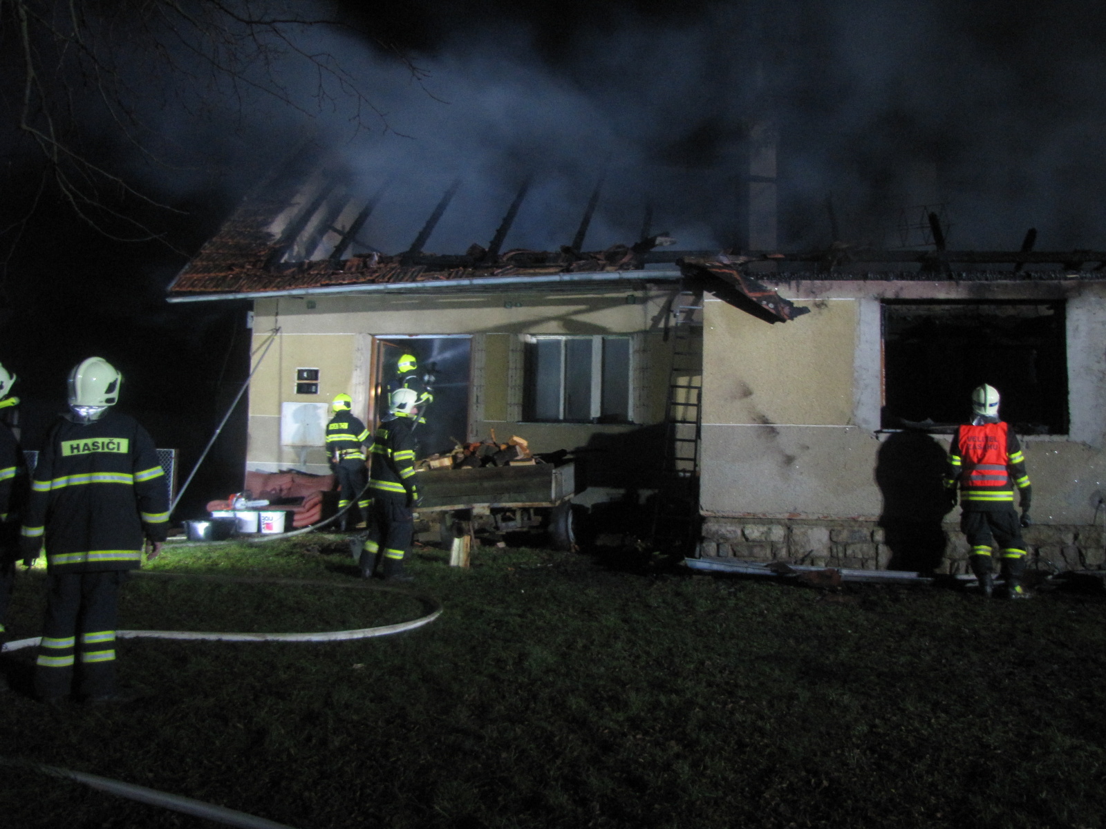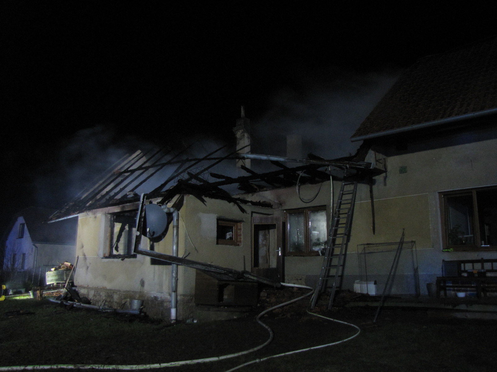 Kromě hašení se hasiči od počátku zaměřili také na uchránění druhé poloviny domu. Požární útok byl veden přízemím, zčásti i zevnitř objektu, kde se oheň šířil především dřevěným stropem a střešní konstrukcí. Ve tři čtvrtě na čtyři bylo nahlášeno, že se podařilo postup požáru zastavit a plameny dále nepostupují. Hasičům se tak podařilo druhou část objektu zachránit. Zásah dále probíhal jedním vodním C proudem.
