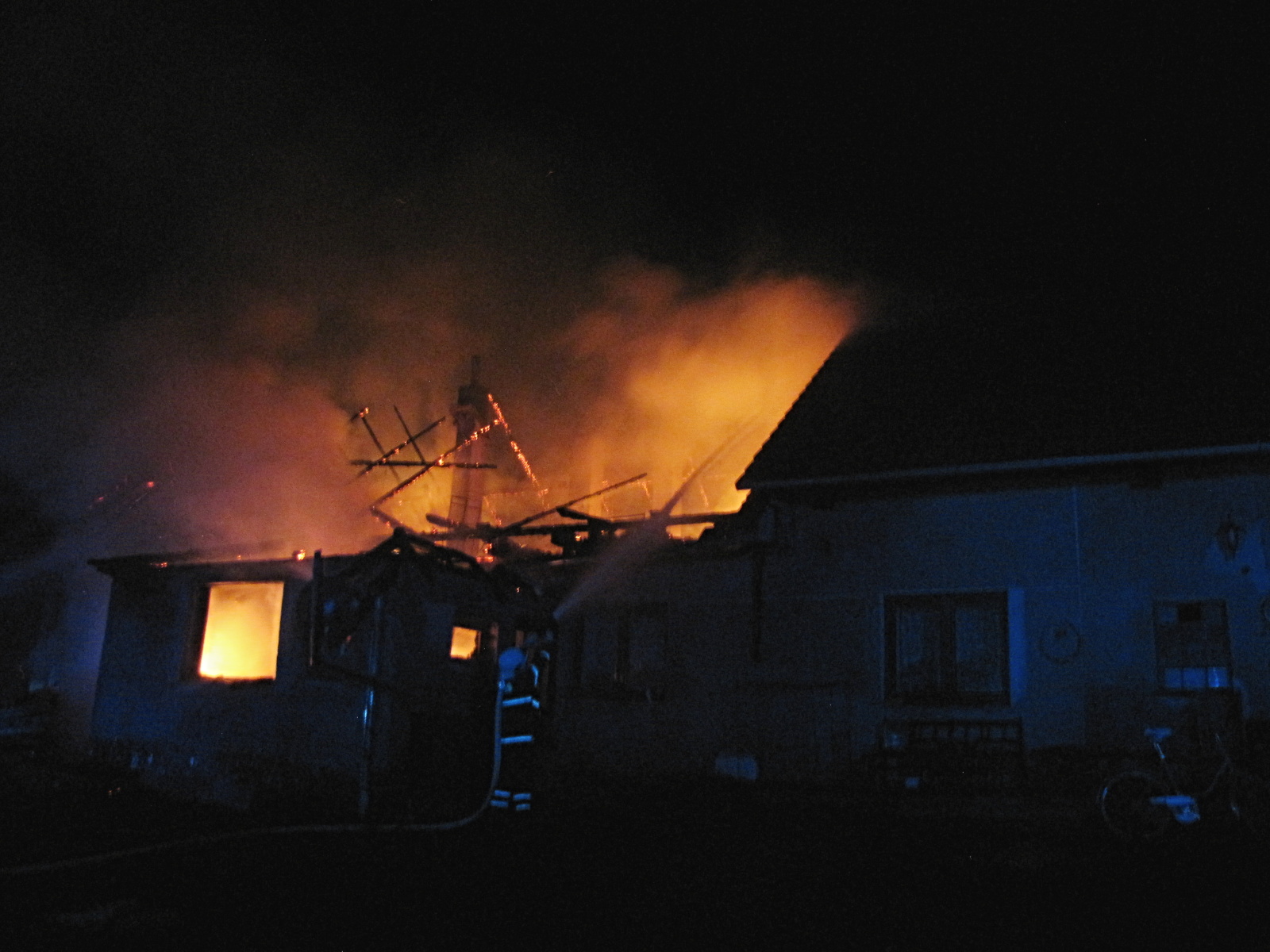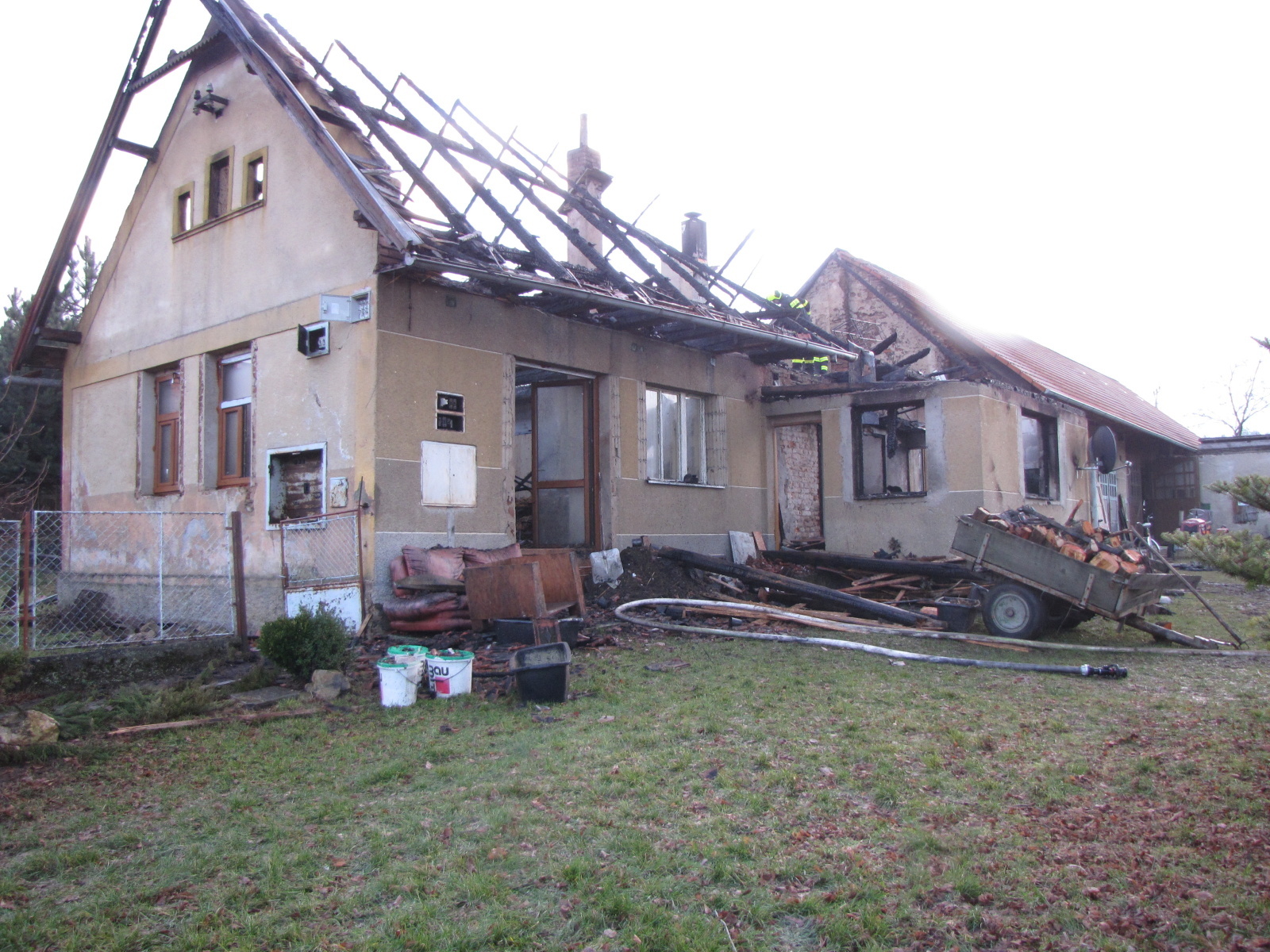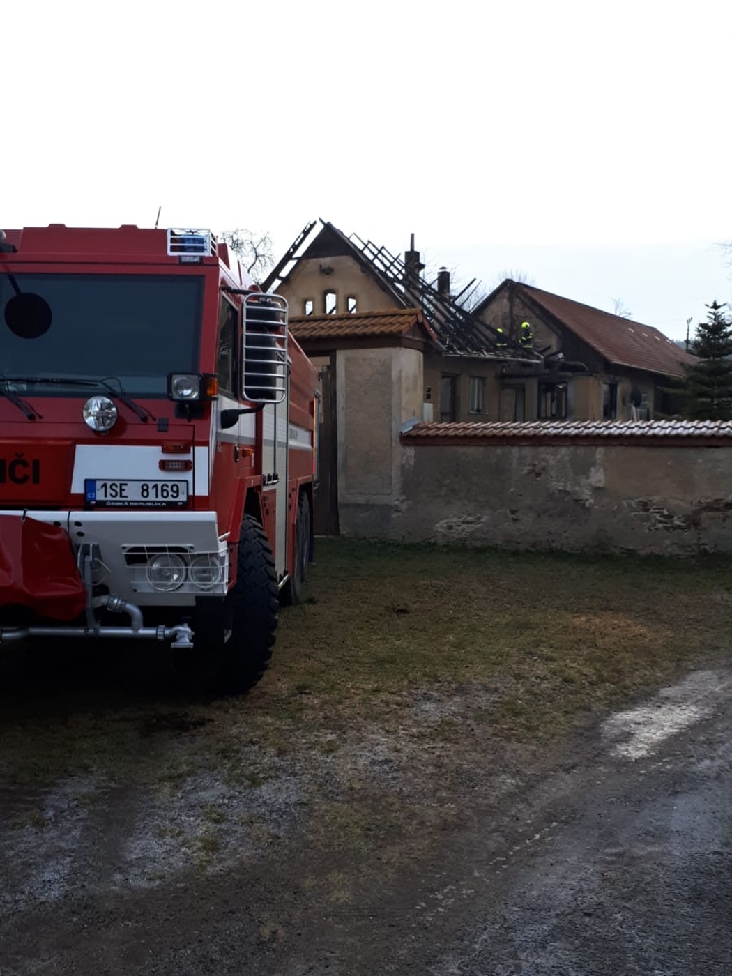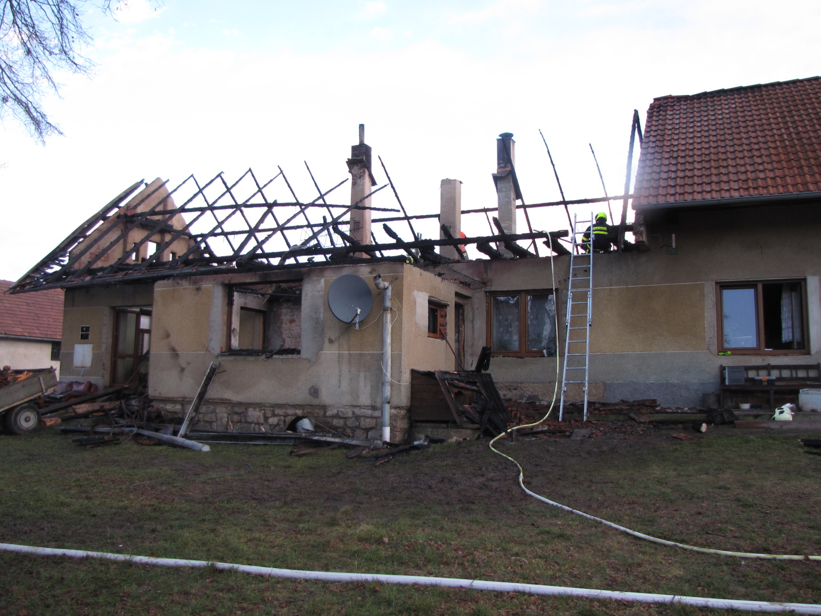 Kromě hašení se hasiči od počátku zaměřili také na uchránění druhé poloviny domu. Požární útok byl veden přízemím, zčásti i zevnitř objektu, kde se oheň šířil především dřevěným stropem a střešní konstrukcí. Ve tři čtvrtě na čtyři bylo nahlášeno, že se podařilo postup požáru zastavit a plameny dále nepostupují. Hasičům se tak podařilo druhou část objektu zachránit. Zásah dále probíhal jedním vodním C proudem.
