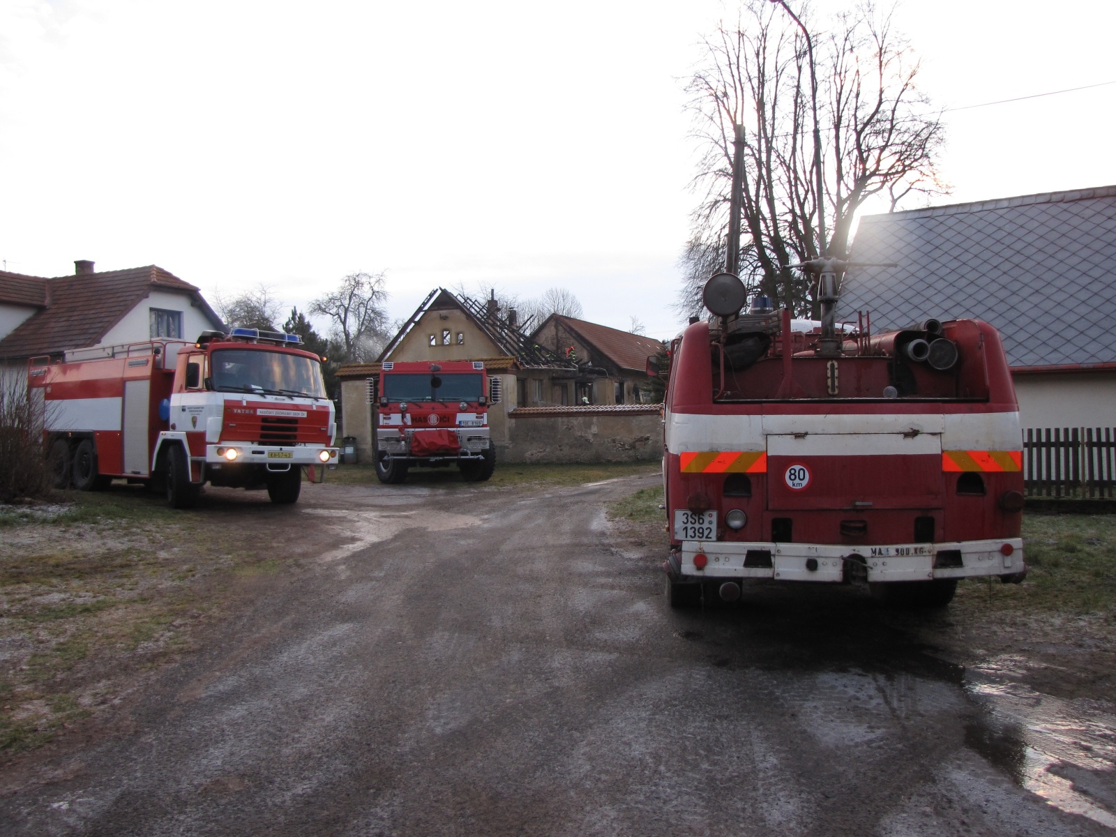 Podle prvotního ohlášení byla požárem zasažena asi polovina staršího statku o půdorysu 8x17 metrů. Operační důstojník k události vyslal profesionální jednotky ze stanic Kutná Hora a Zruč nad Sázavou a místní dobrovolnou jednotku Vlastějovice. Jelikož lokalita leží těsně u hranice kraje, tak byly na místo povolány v rámci mezikrajské spolupráce také jednotky Kraje Vysočina – konkrétně profesionální jednotka ze stanice Ledeč nad Sázavou a dobrovolná jednotka obce Jedlá.